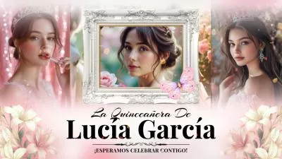 Pink Flower Butterfly Quinceanera Happy Birthday Invitation Collage Slideshow