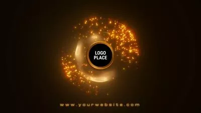 Golden Glowing Circle Particle Technology Rotating Logo Intro