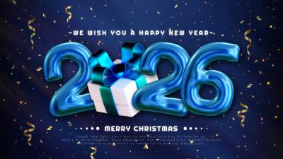 Blue Merry Christmas Welcome 2026 Happy New Year Wishes Intro