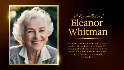 This is not merely a funeral template; it carries the ordinary yet extraordinary moments of the deceased's life. Feel free to use this FlexClip template to commemorate those who have passed away!