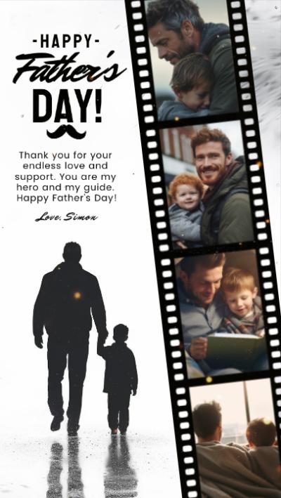 The father's figure is like a scene from a movie - his narrow shoulders bear the burden of the family. Father's Day is coming up. Come and use this template filled with cinematic-style elements to express your love for your father!