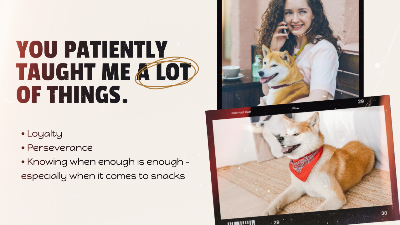 The lifespan of pets is much shorter compared to that of humans. But the impact they have on us is long-lasting and profound. If you want to cherish memories of your pet, why not use this template provided by FlexClip? You can add your own photos to the template and share stories about your bond with your pet. Come and give it a try!