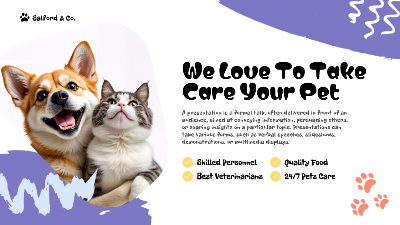 Nowadays, more and more people keep pets in cities. To better take care of our lovely friends, pet care centers are needed now. If you want to promote your pet business, this cute-style template is made for you!