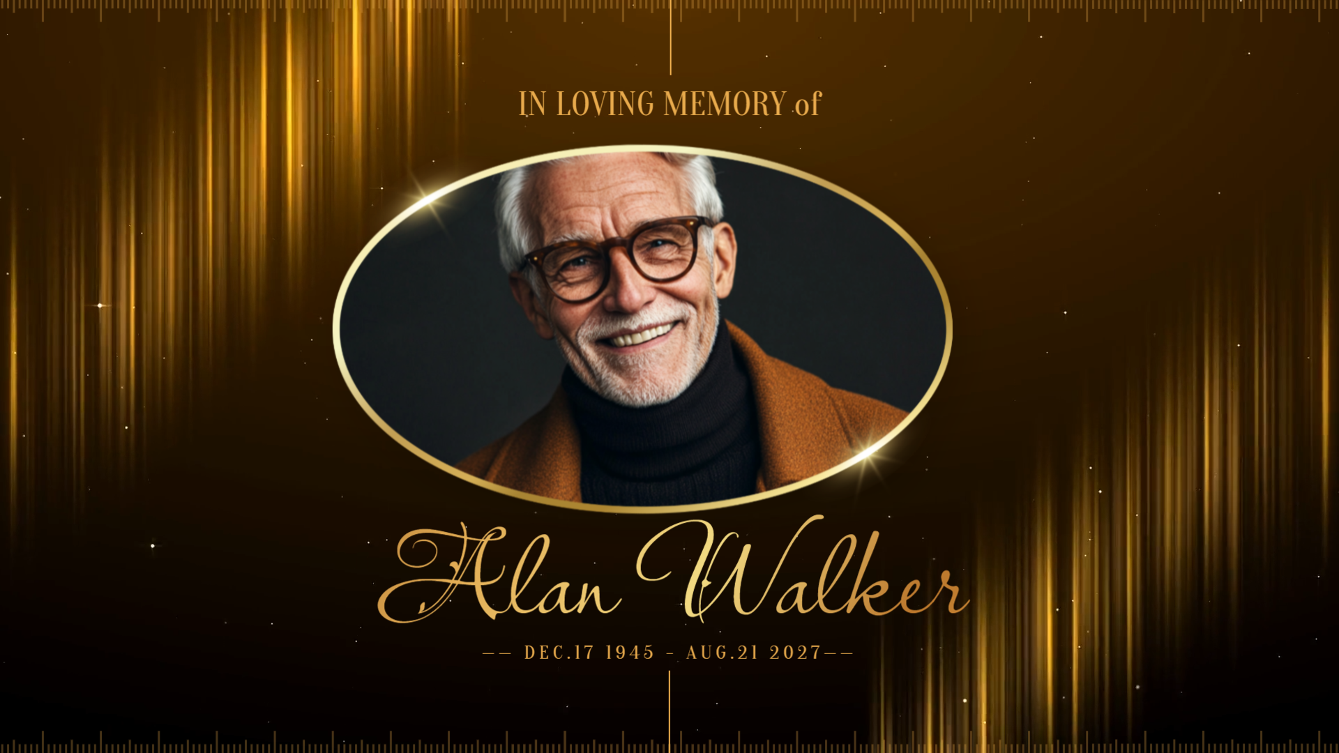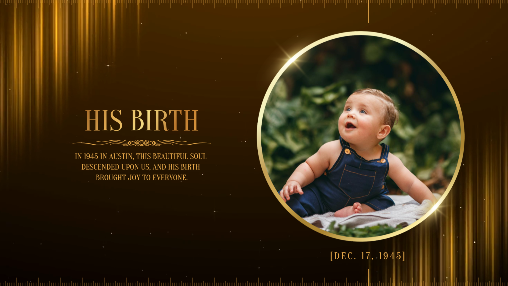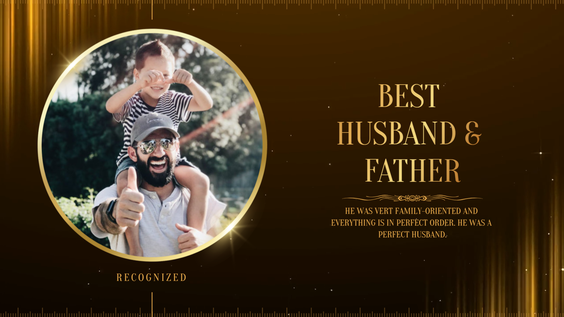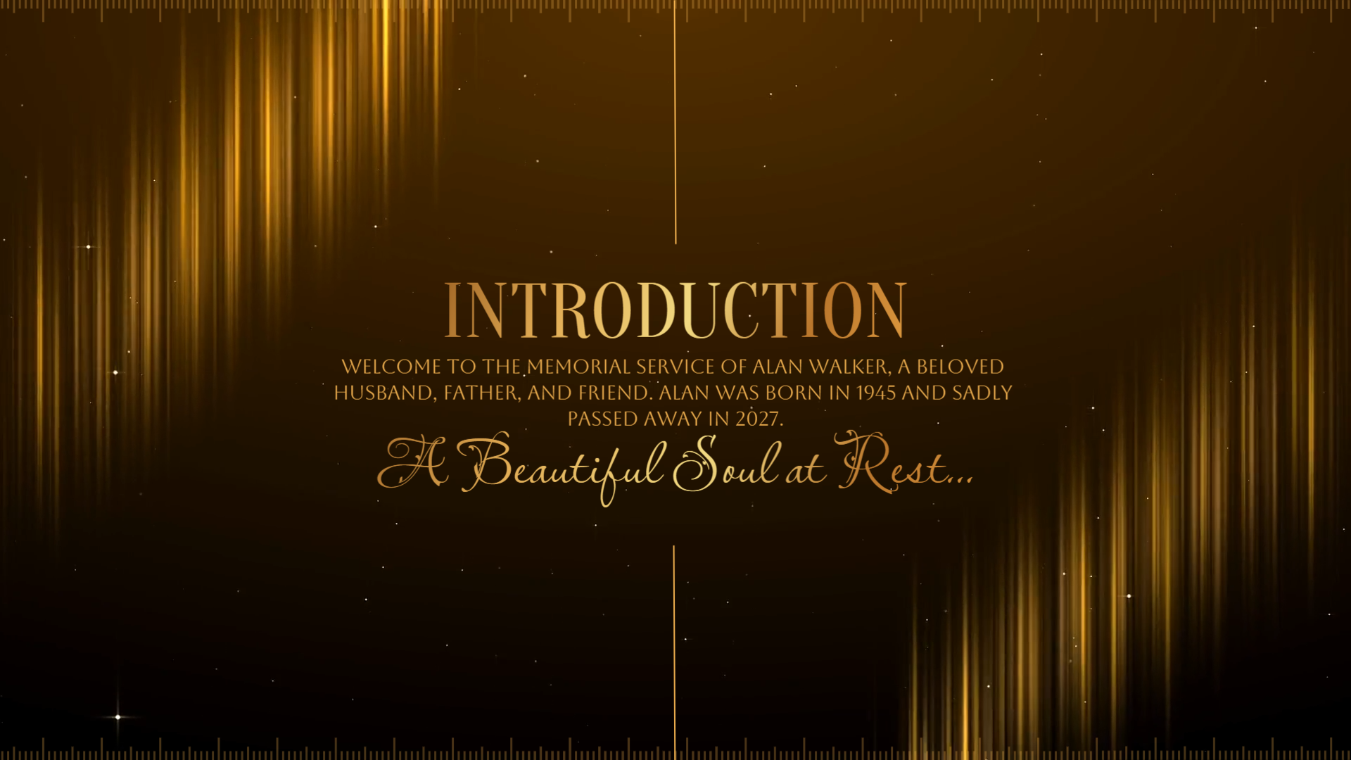 Golden Particle Funeral Obituary for Male Love Memorial Tribute Photo Collage Slideshow