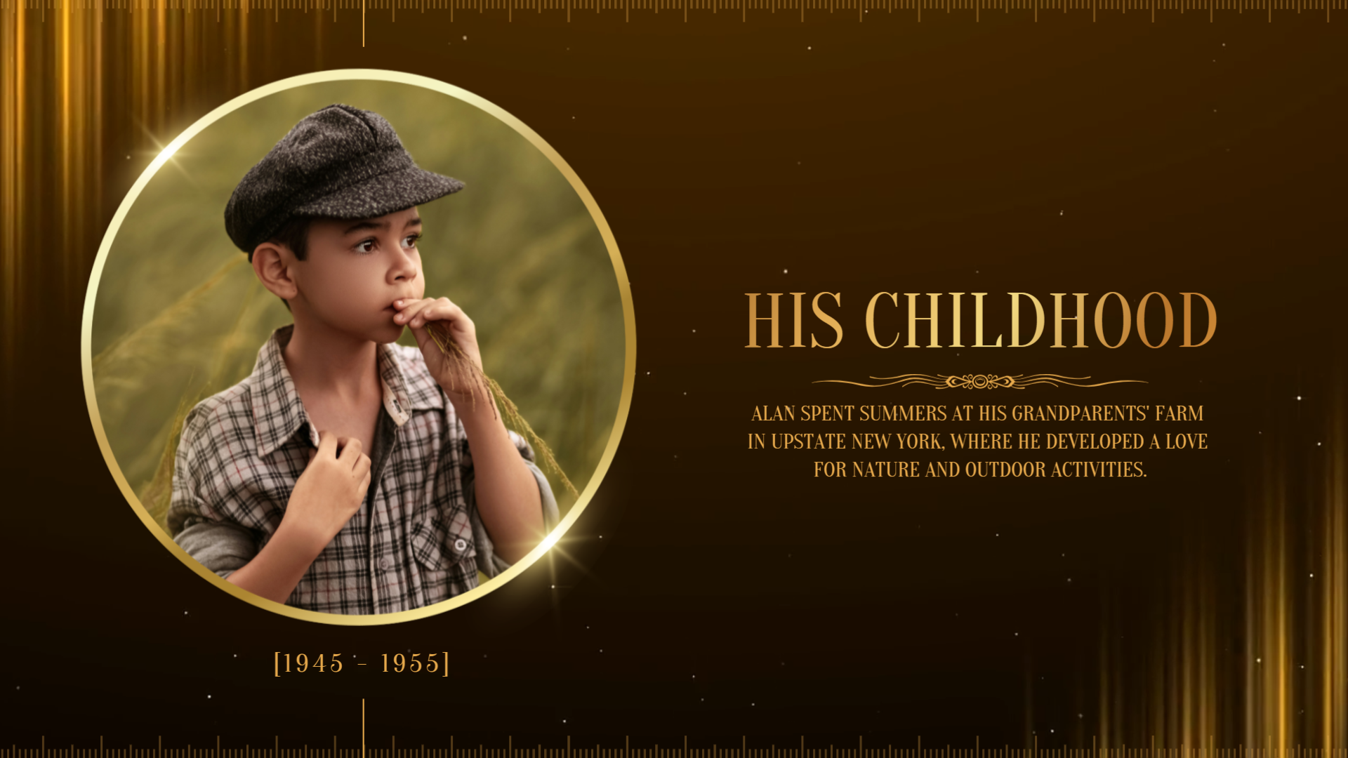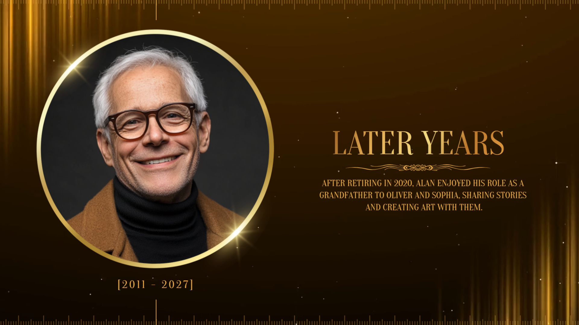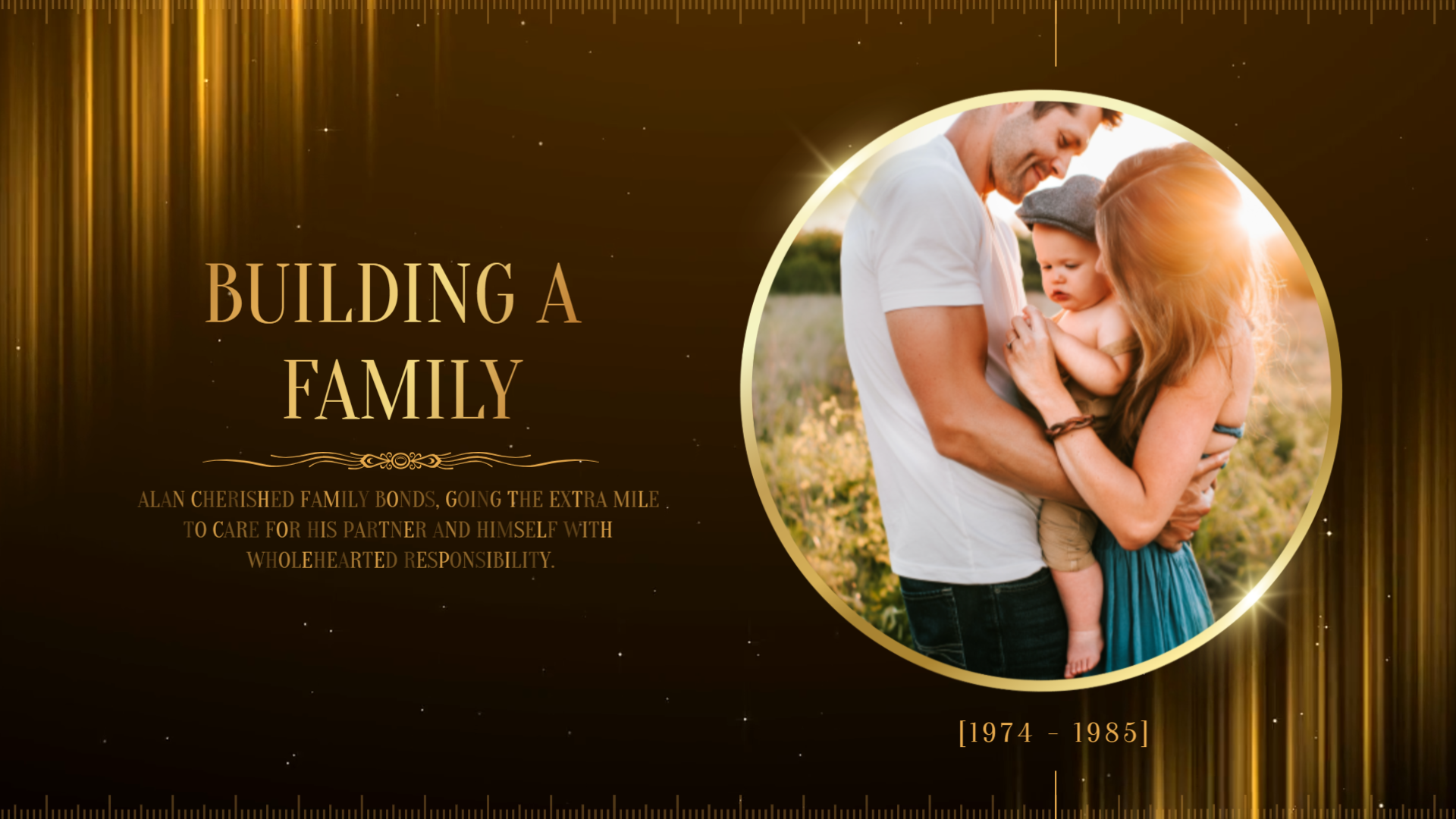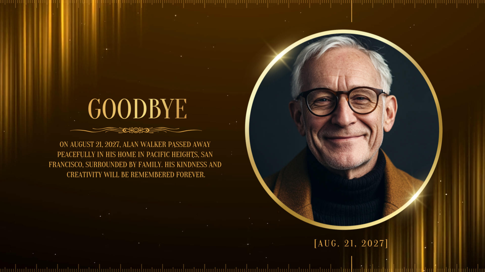 Golden Particle Funeral Obituary for Male Love Memorial Tribute Photo Collage Slideshow