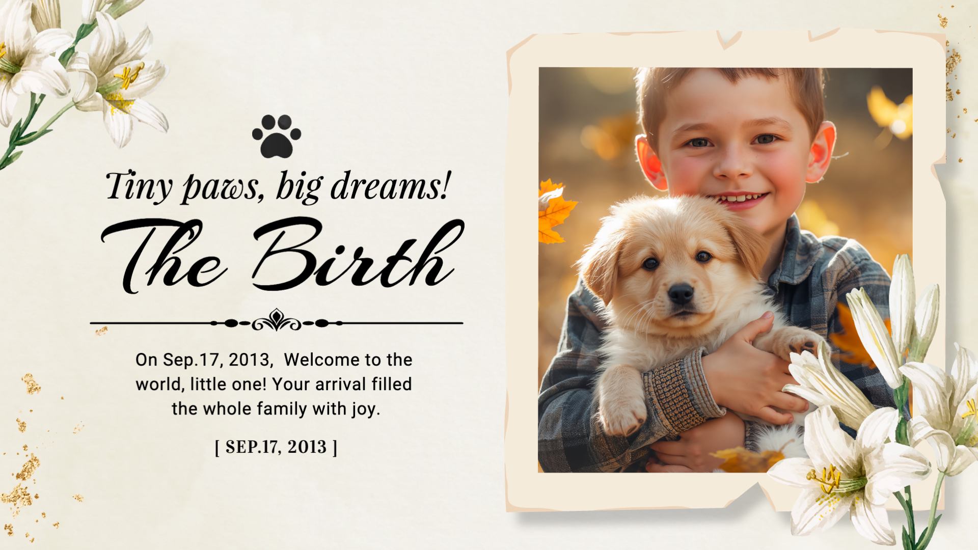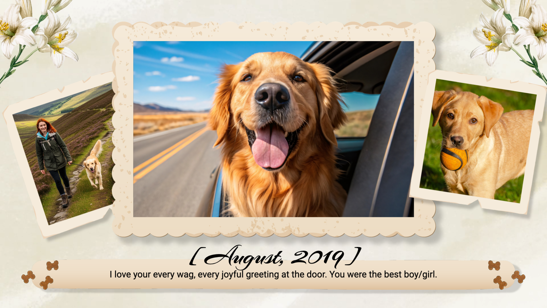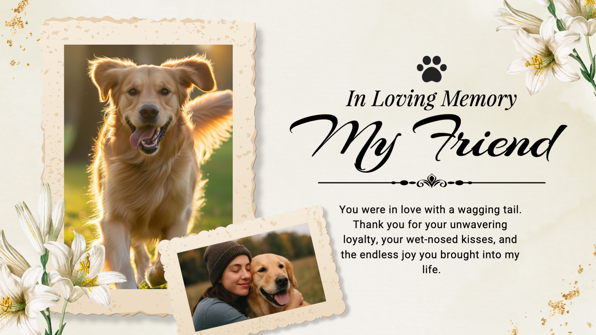 Ink Flower Cute Pet Dog Family Love Memories Funeral Obituary Collage Slideshow