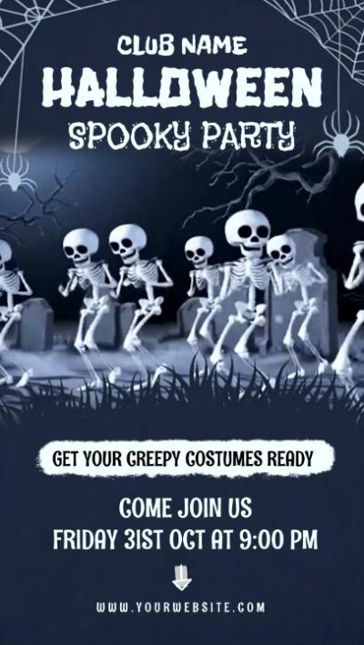 Tired of boring text invitations for Halloween? Try this glow-in-the-dark skeleton template from FlexClip! It looks amazing on phone screens—share it on Twitter/X to invite followers and make your party sound perfect!