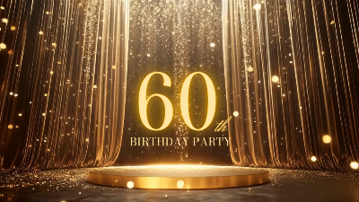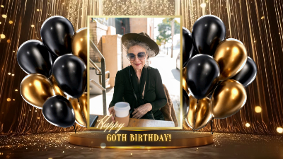 Black Golden Particle Luxury 60th Birthday Celebration Wishes Photo Collage Slideshow