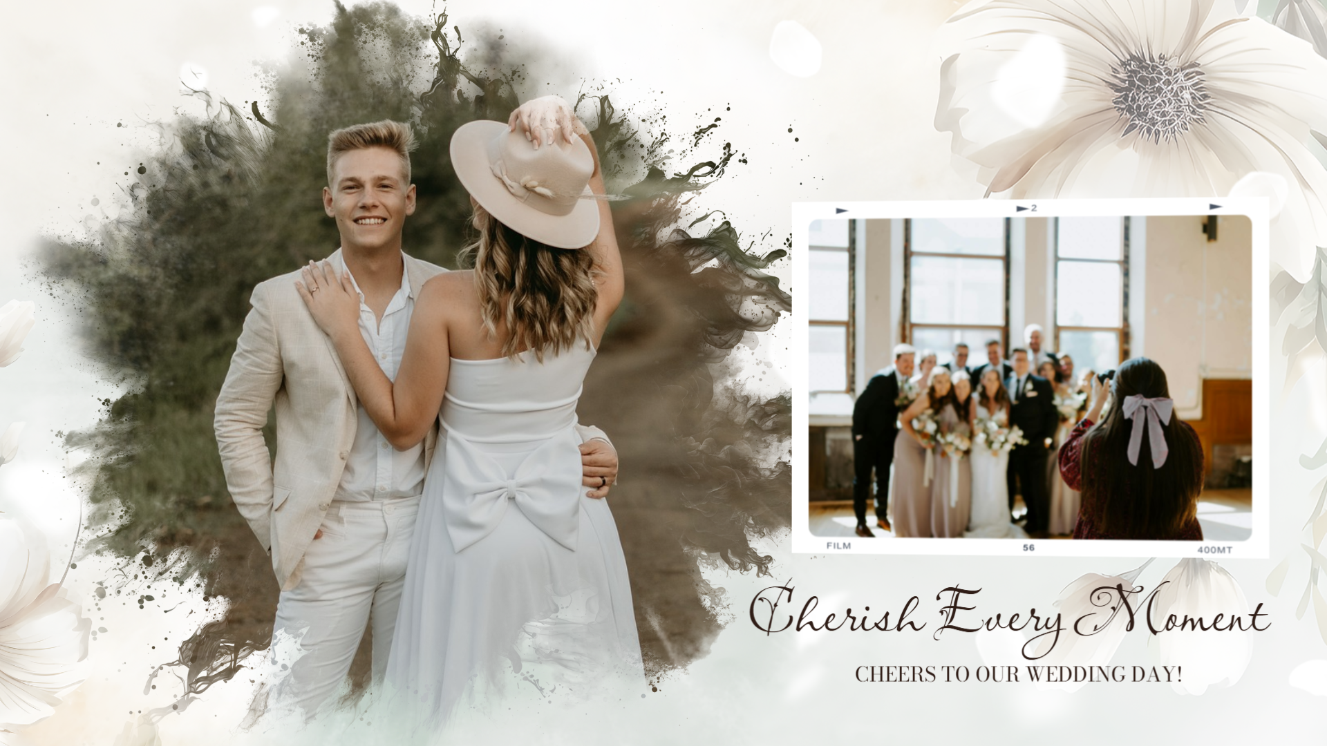 Here's a wonderful template designed to hold all the happiness of your wedding! With its incredibly romantic layout and sophisticated modern text, it's just right for celebrating your big day or sharing those unforgettable, joyful moments. Go to FlexClip right away and try it for free!