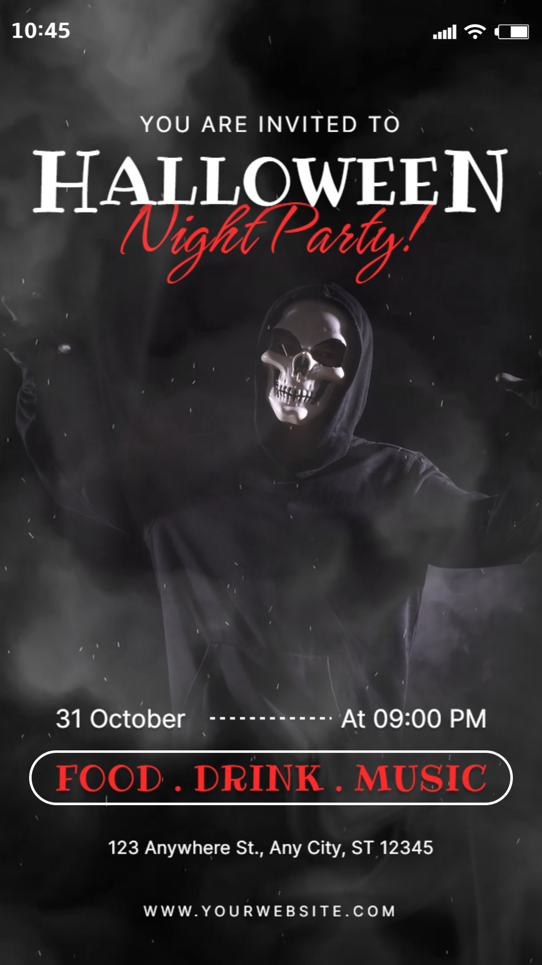 Witchy vibes only for your Halloween bash? FlexClip's witchy-themed phone invitation template is just what you need! Customize the text, add a fun video clip, and invite everyone to your creepy-cool party.
