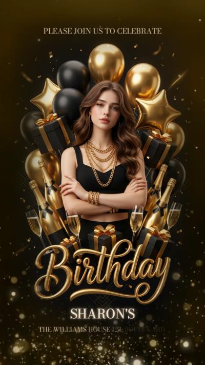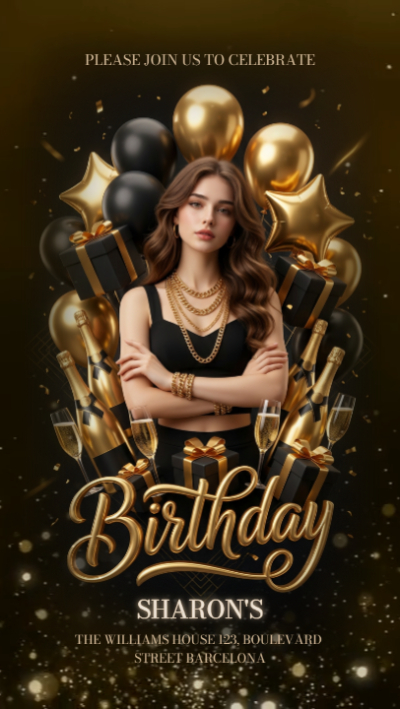 Let's celebrate a birthday with this invitation template made with FlexClip! Its luxurious, beautiful design fits your theme perfectly. With AI, you can now easily create your own birthday invitation.