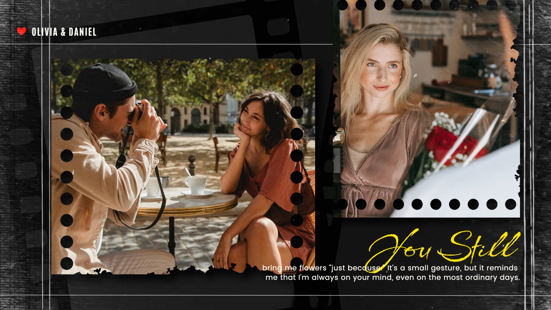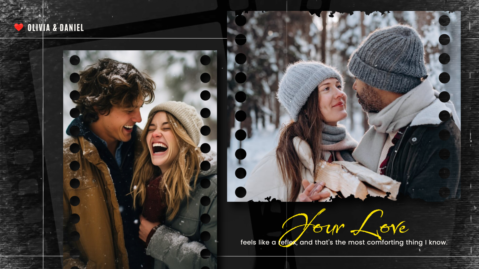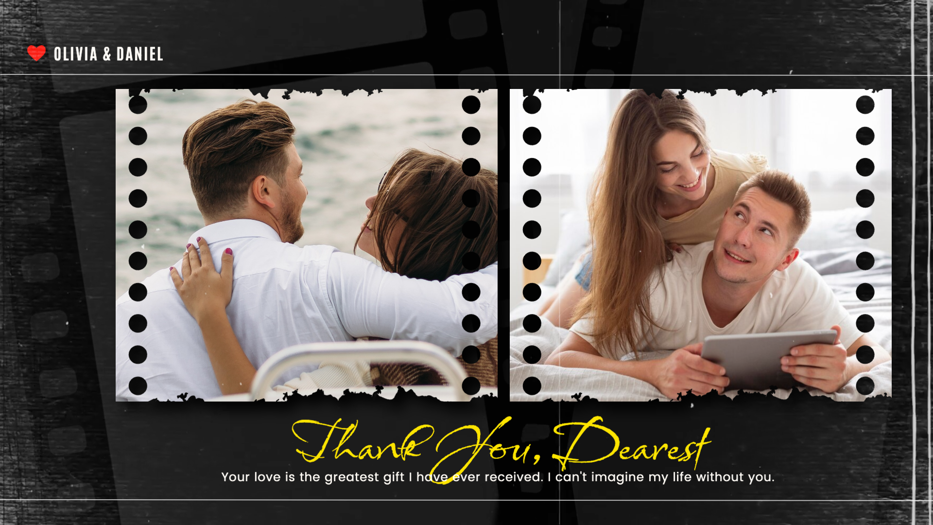 Do you want to spread the happiness of love via an elegant template with a filmic touch? Then this FlexClip template is perfect for you! It's free to use, and you can easily adjust the content to fit your needs. Share your precious love story now!