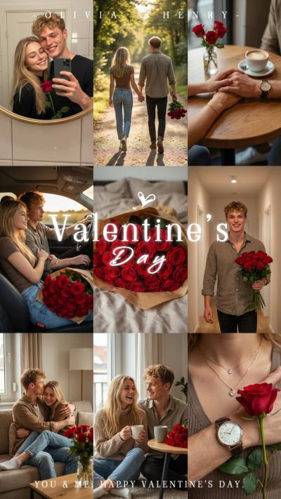 This AI template can generate various nine-grid Valentine's Day rose couple photos, which are particularly suitable for posting on social media platforms. Come and give it a try!