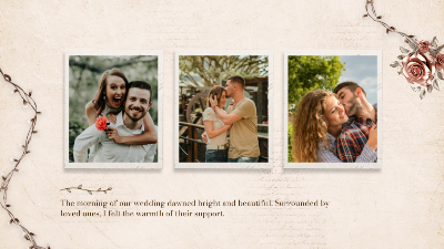 This is a retro, commemorative love slideshow template for weddings. Weddings, as one of the most significant moments in life, are believed to have many aspects worth cherishing. Please click on FlexClip to capture these moments for yourself.