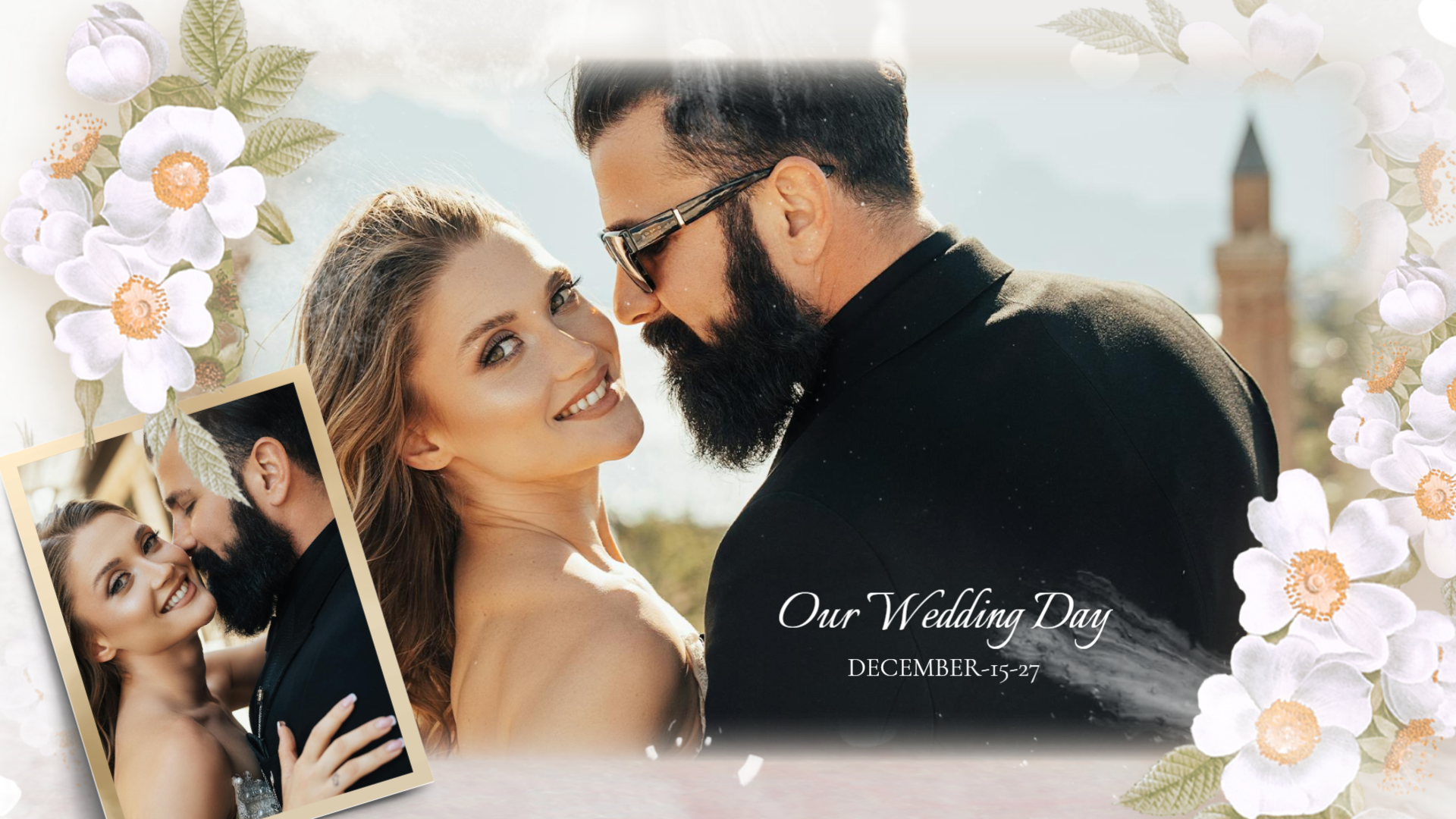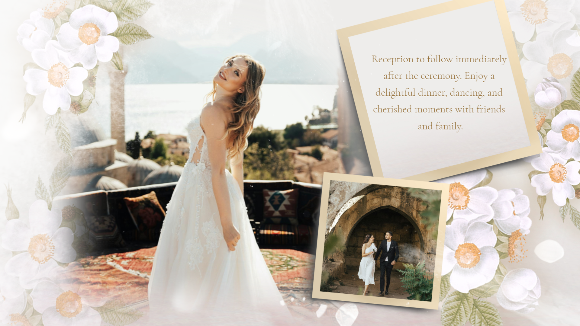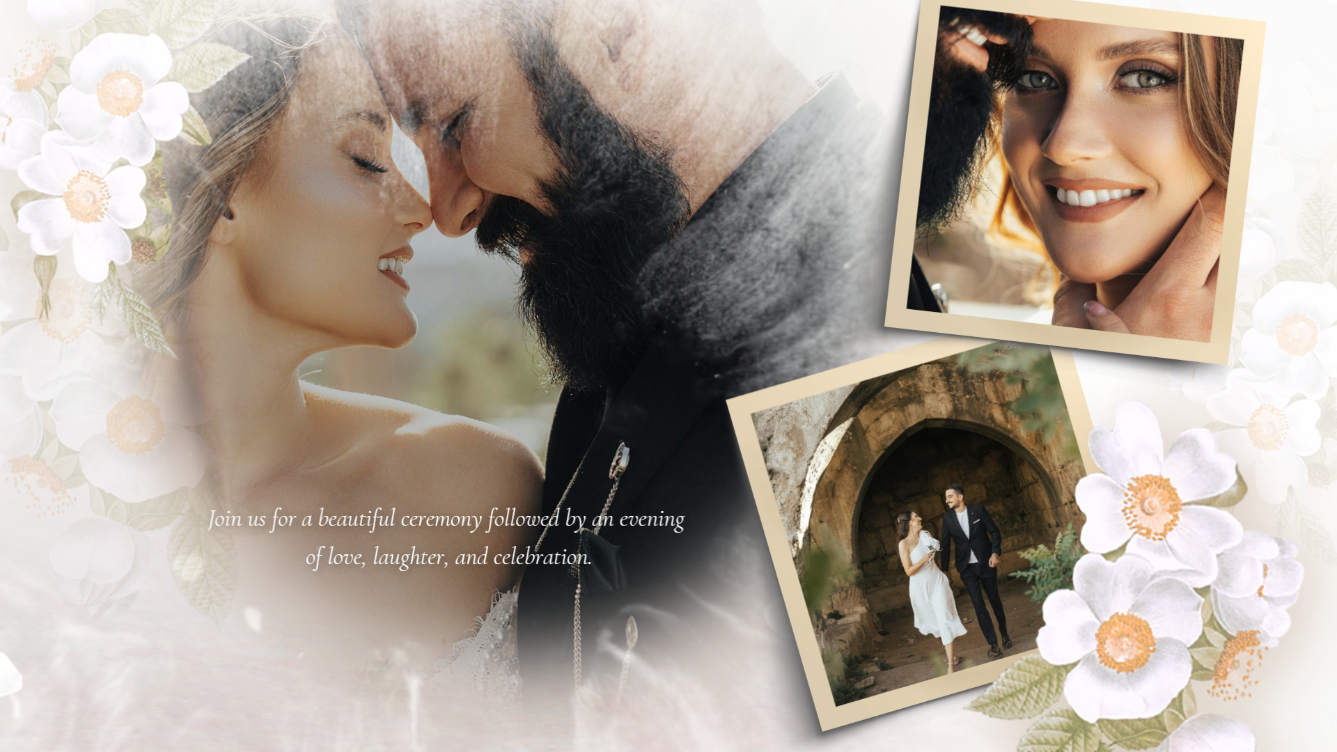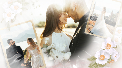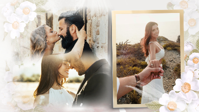 Flowers Romantic Love Story Engagement Wedding Invitation Photo Collage Slideshow