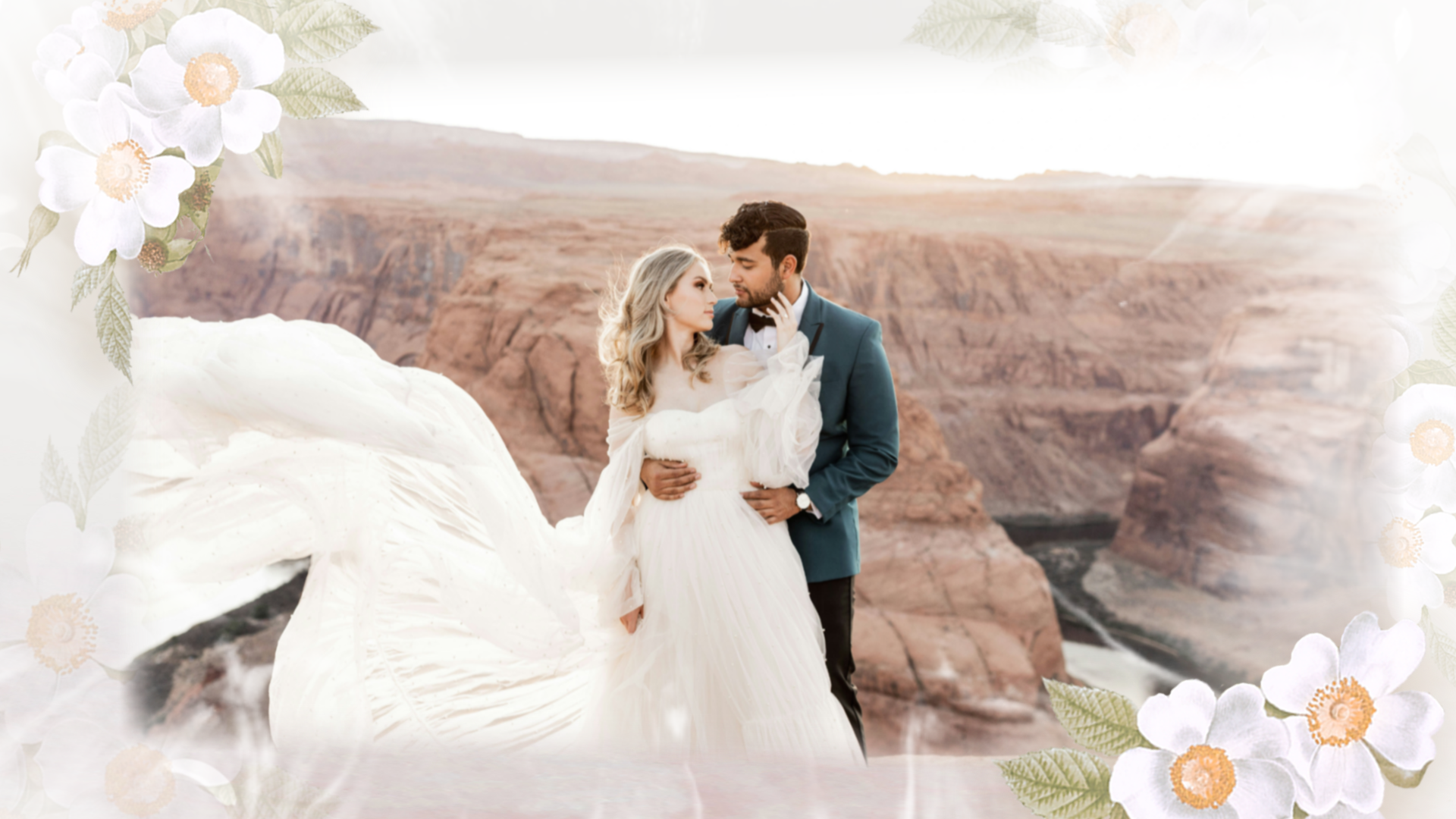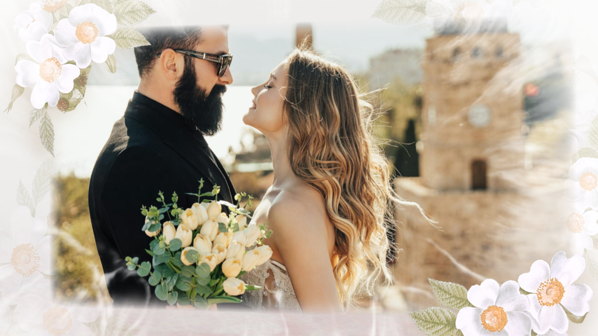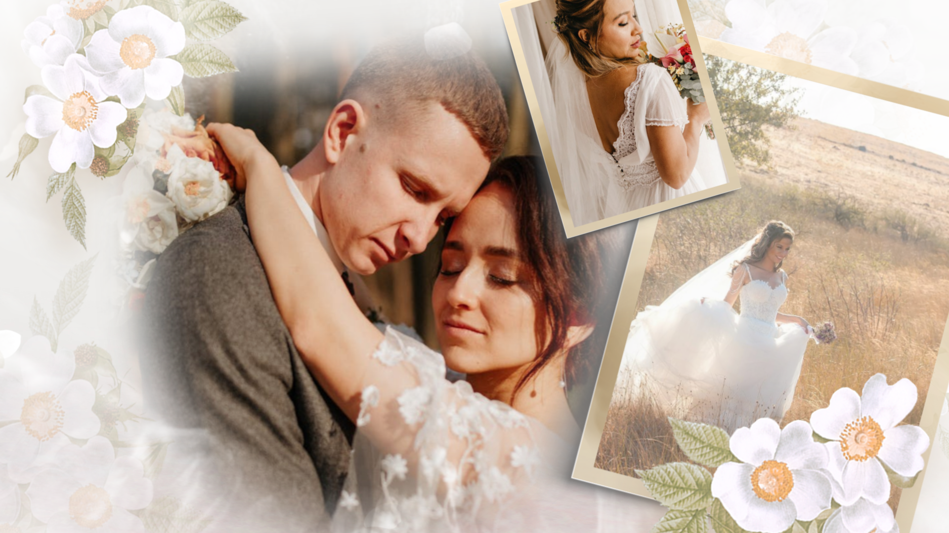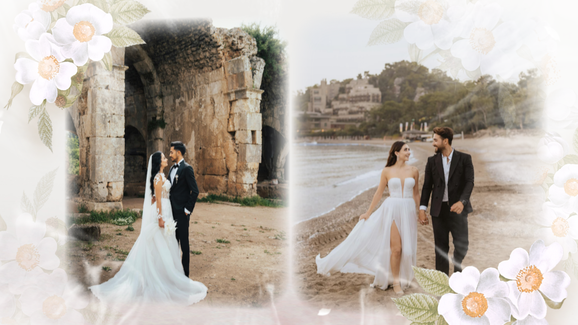 Flowers Romantic Love Story Engagement Wedding Invitation Photo Collage Slideshow