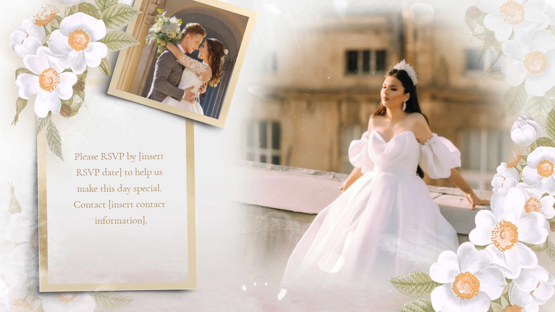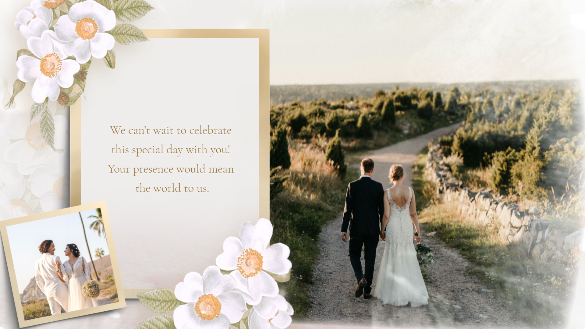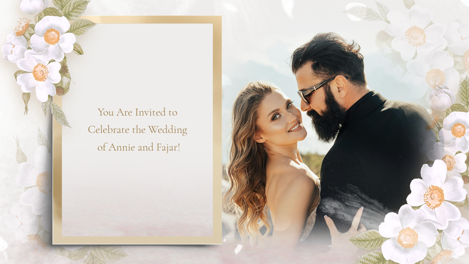 Here's a wedding template that you can combine with wedding photos, come and use it to invite your friends and family. It's free on FlexClip! Share your love story now!