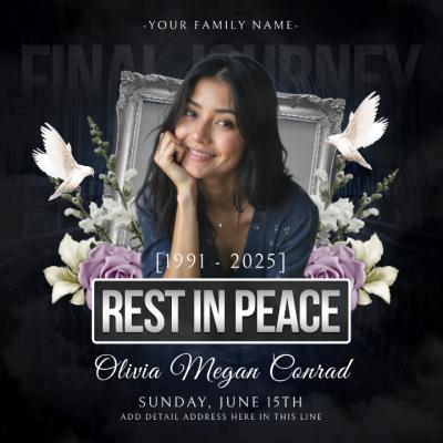 Dark Rest in Peace Memorial Funeral Tribute Announcement Invitation Post
