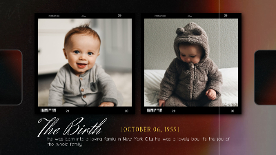 To show our love and respect for the people who passed away, a memorial template can help. Give this meaningful template on FlexClip a go; you can put in photos and stories of the deceased, along with your own memories.