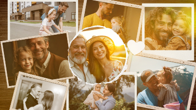 Vintage Realistic Family Fathers Day Travel Memory Photo Collage Slideshow