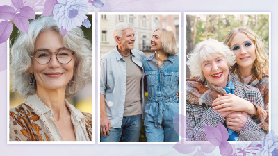 Purple Floral Funeral Memorial Obituary Photo Collage Slideshow