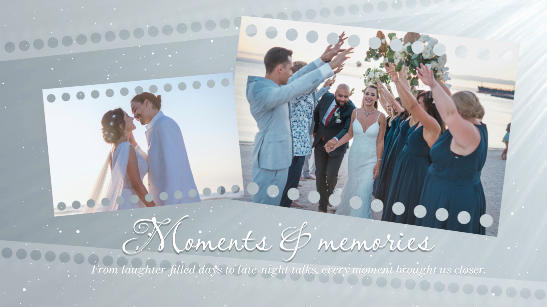 Come use this template to capture the wonderful moments of your wedding! Whether it's the interactions between you and your partner, or the scenes with your family, all of these fit perfectly in this carefully designed FlexClip template.