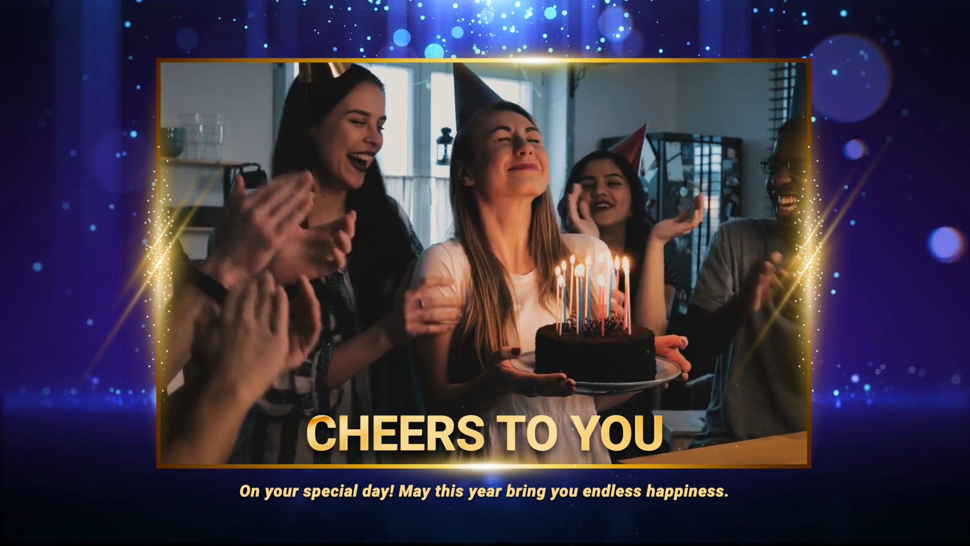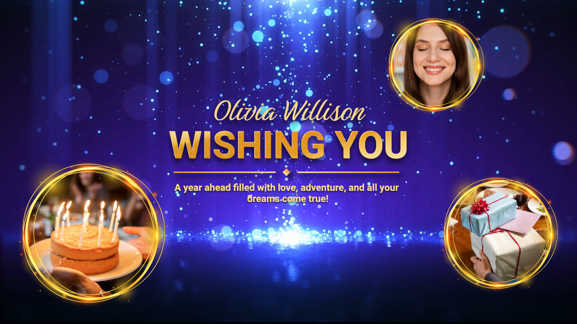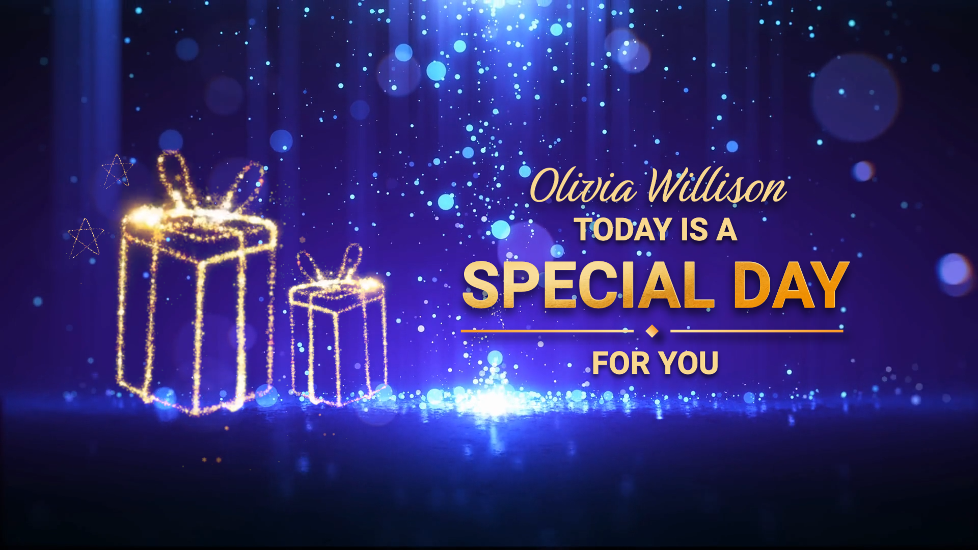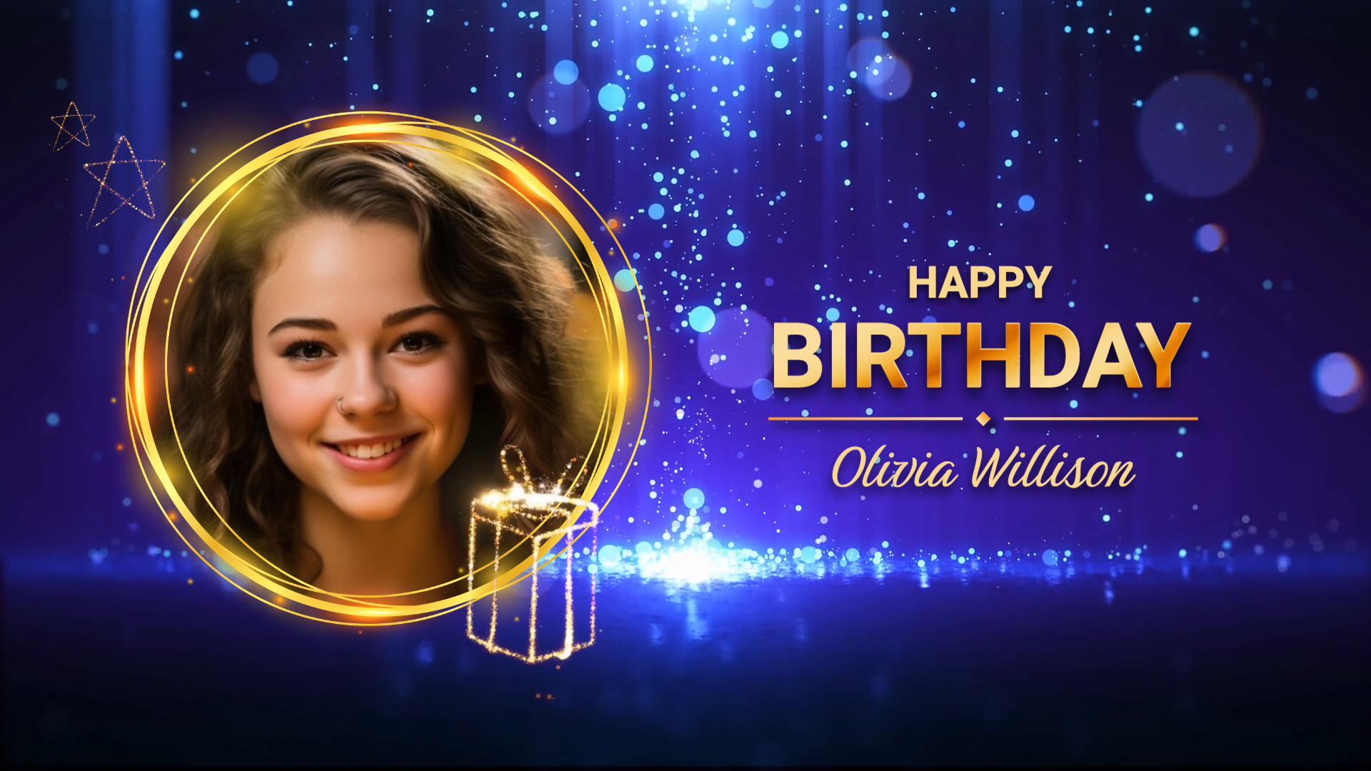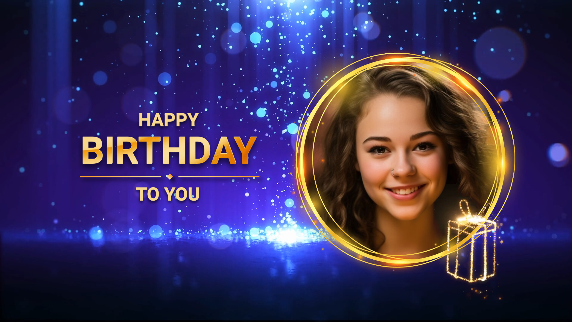 Blue Bokeh Gold Gift Happy Birthday Message Slideshow Video