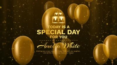 A Collage of 8 Photos Featuring a Golden Particle Balloon Celebrating the Birthday of Love