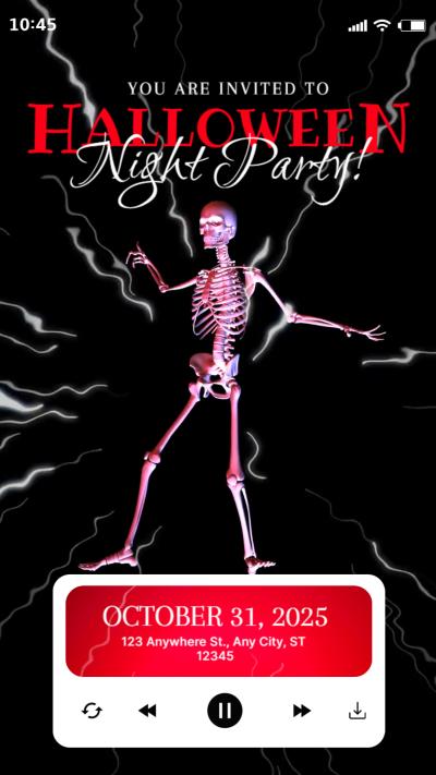 Skeleton Ghost Dance Halloween Lightning Music Party Night Invitation Instagram Story Video