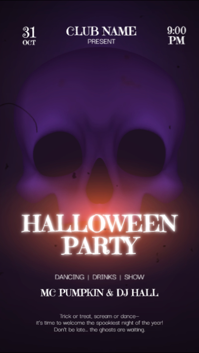 Do you want a unique Halloween invitation to invite your friends to your Halloween party? This template is clearly very suitable. The countdown design adds a sense of suspense, making people eager to find out more. Come and try it out on FlexClip!