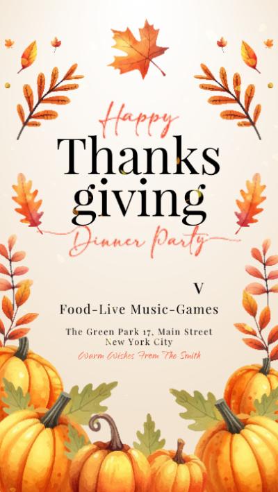 Happy Thanksgiving Dinner Party Invitation Family Greeting Story