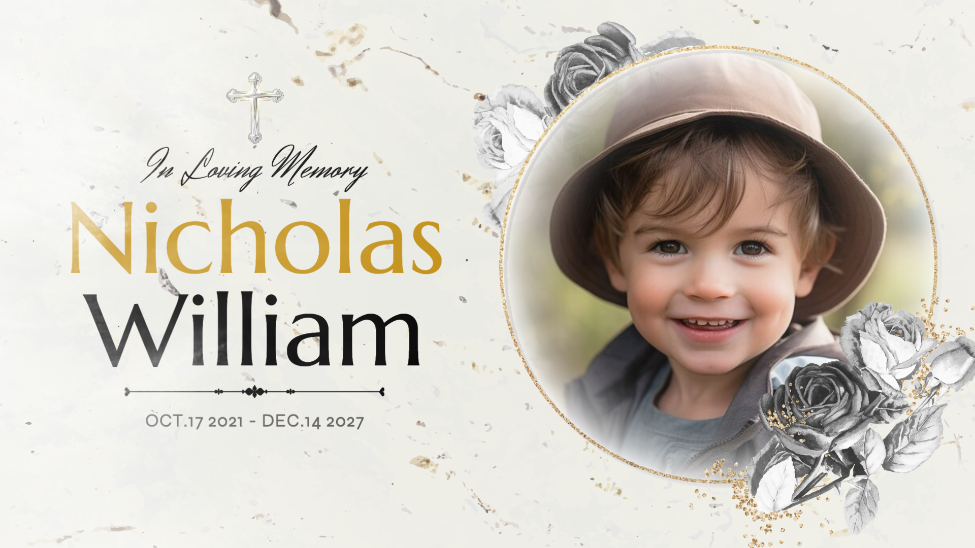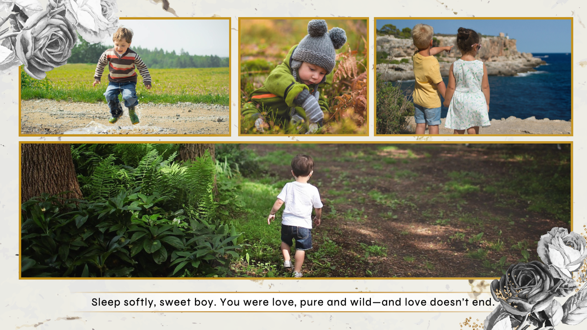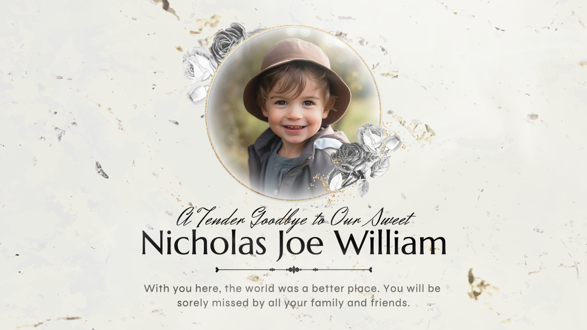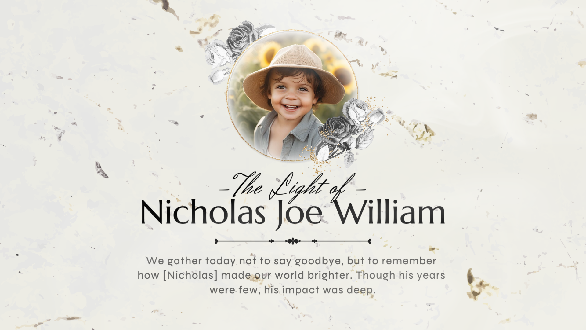 Simple Ink Floral Funeral Memorial Obituary Photo Collage Slideshow