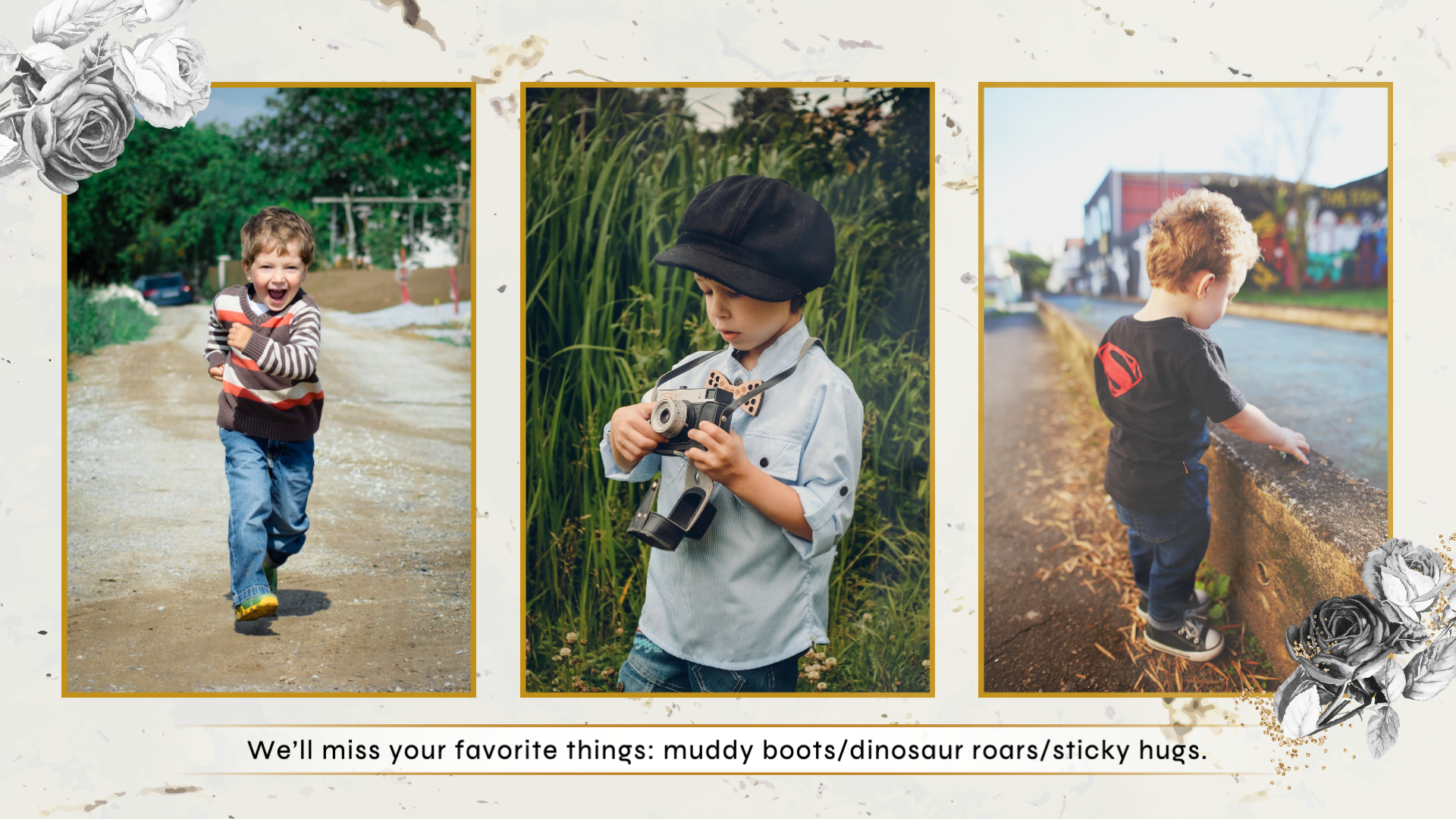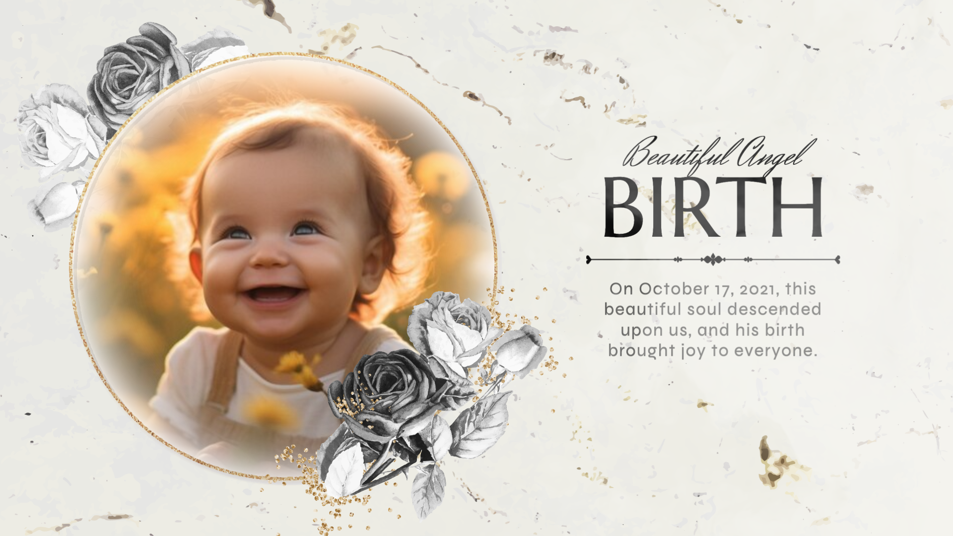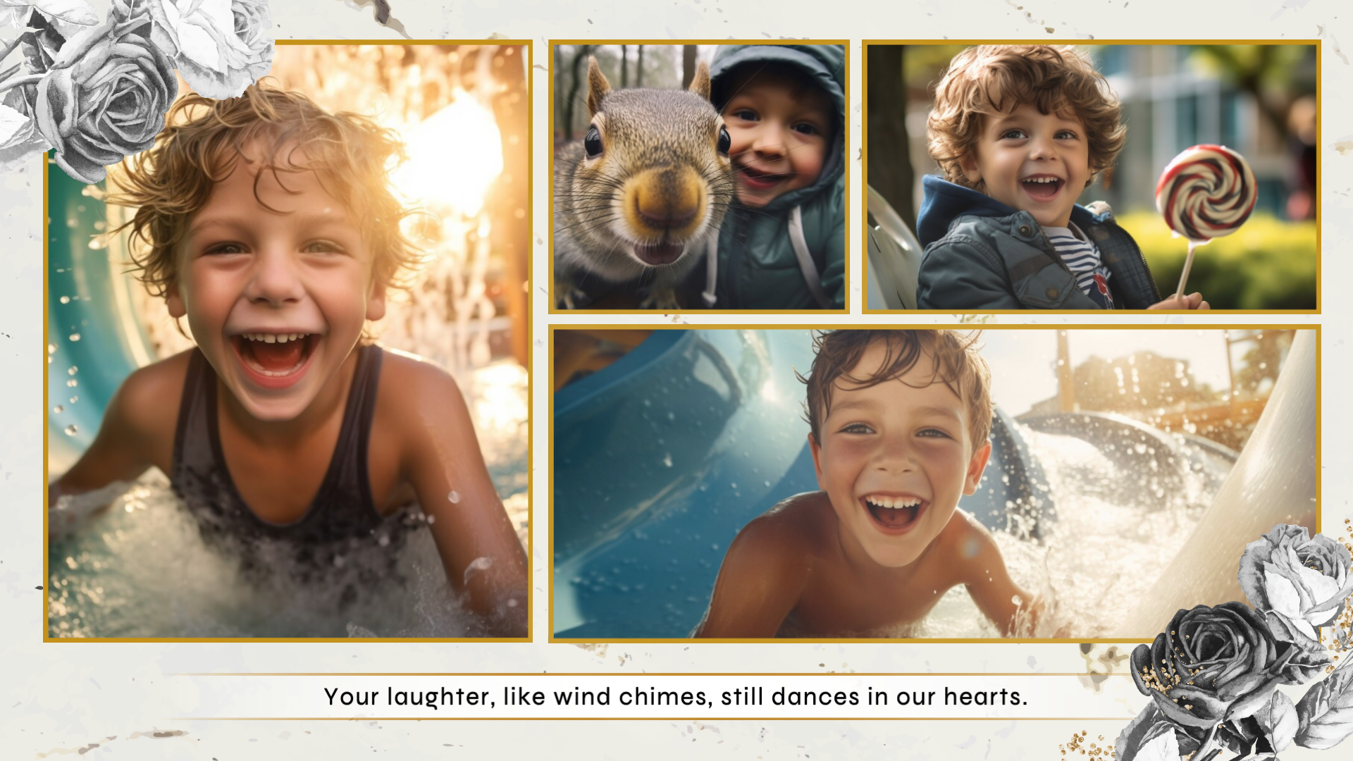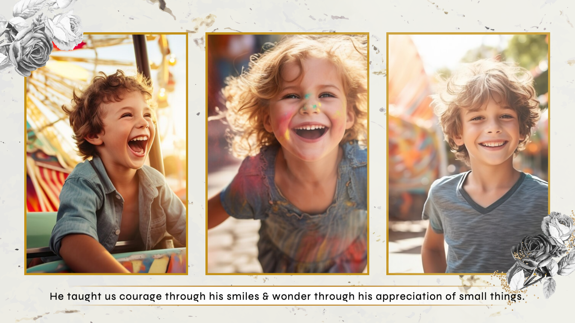Simple Ink Floral Funeral Memorial Obituary Photo Collage Slideshow