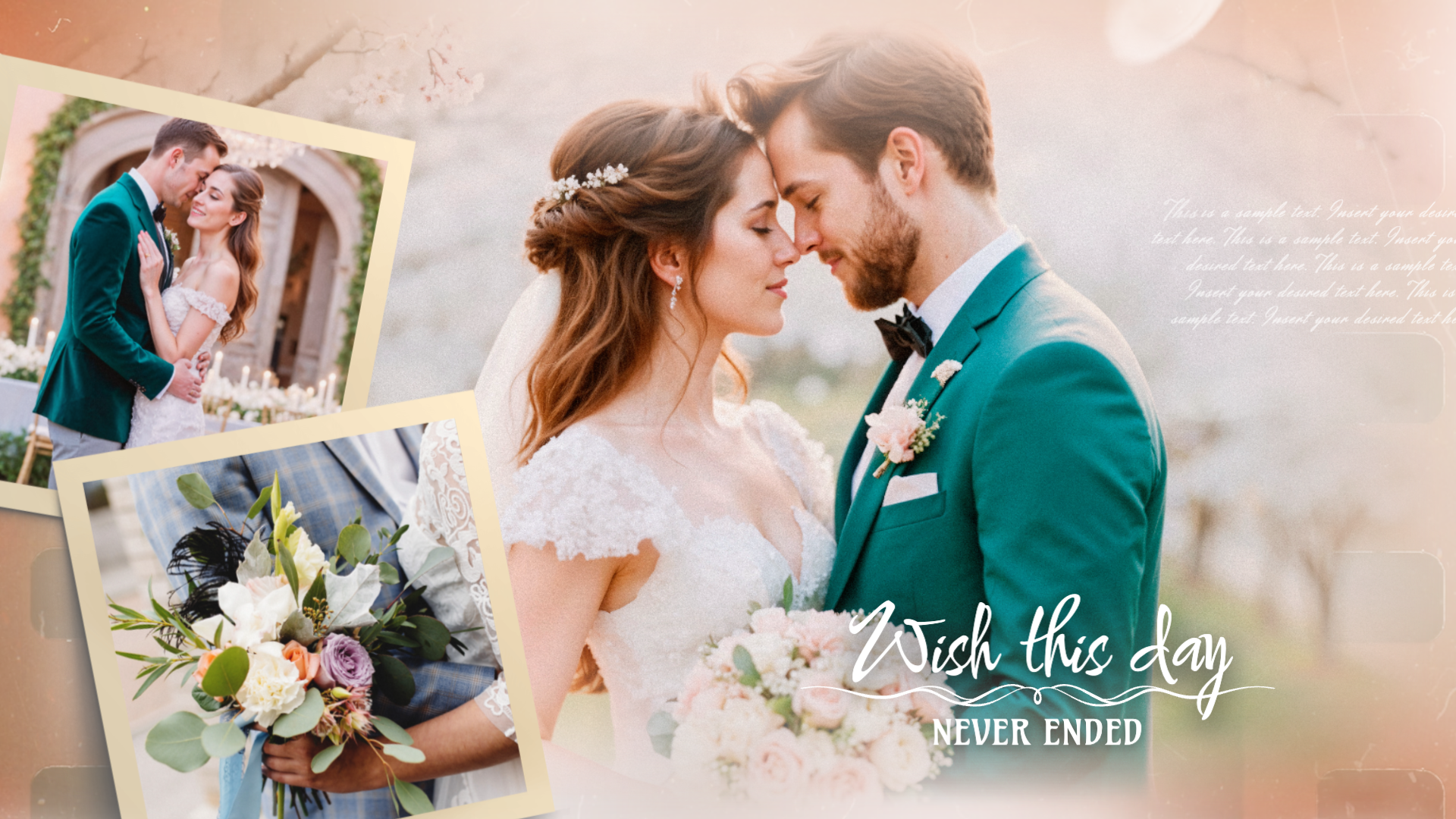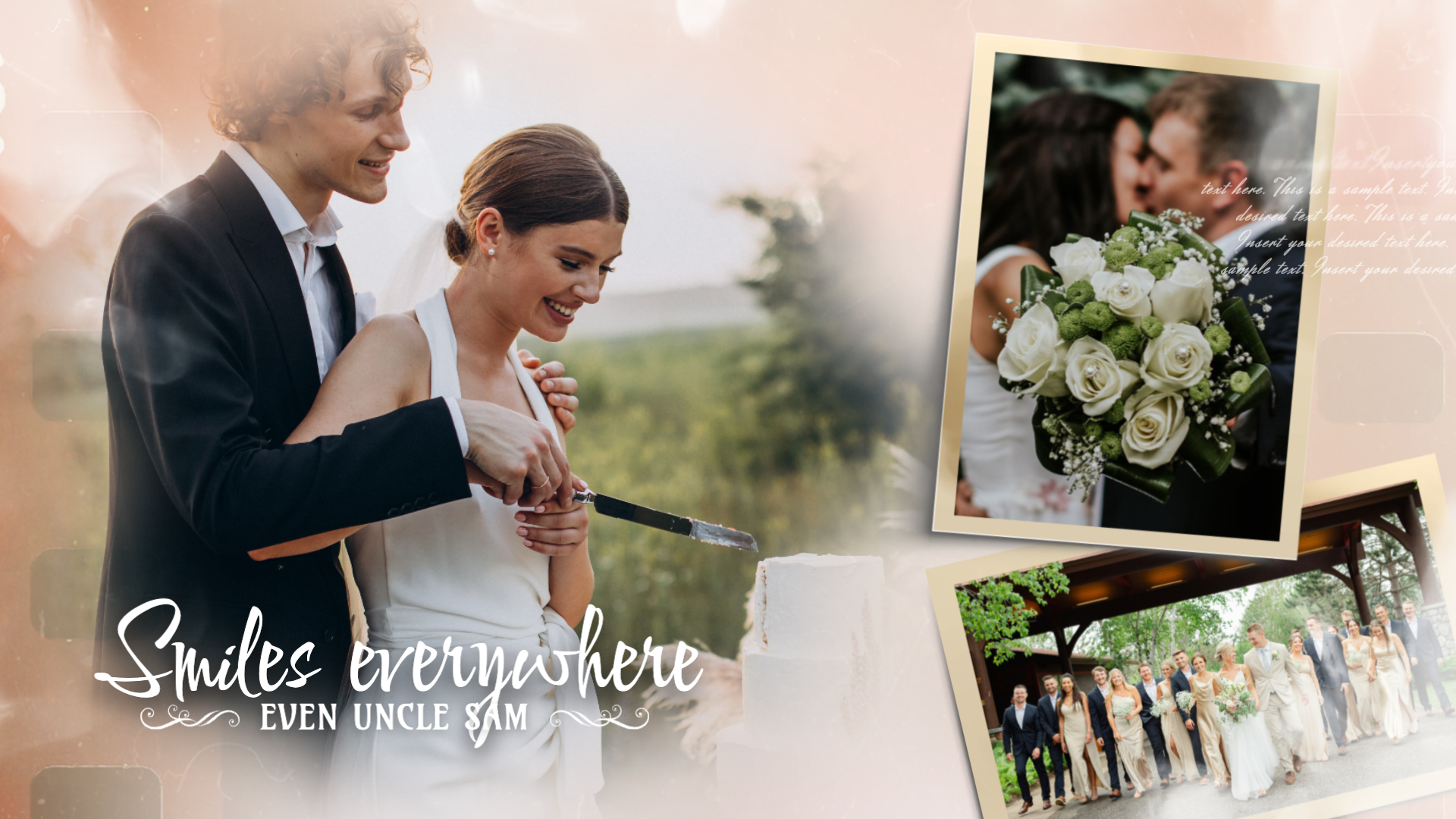 The wedding was filled with wonderful moments. If you want to capture all these scenes, why not click on FlexClip and use this wedding template? The beautiful layout and style can make those wonderful moments even more vivid!