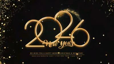 Gold Particle Merry Christmas Welcome 2026 Happy New Year Business Intro