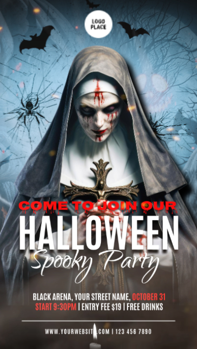 Terror Ghost Phone Call Happy Halloween Horror Nun Party Invite Instagram Story