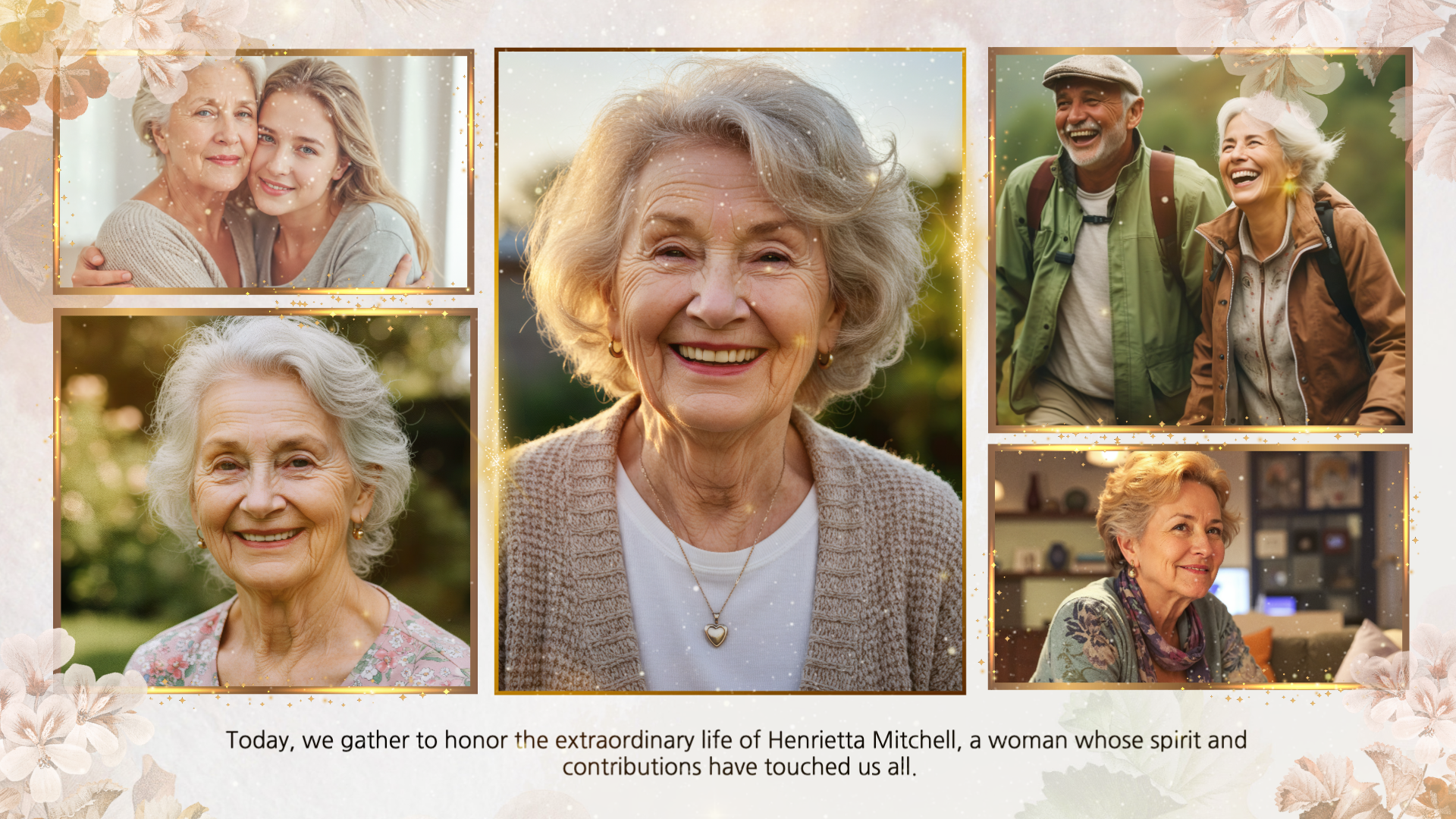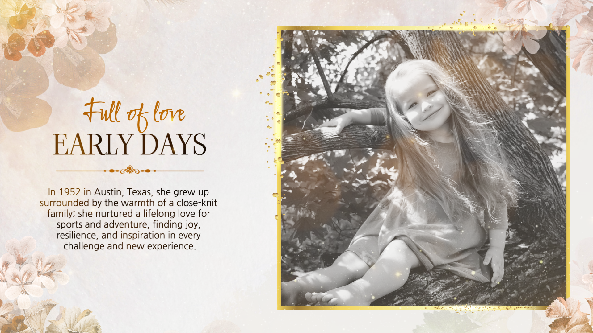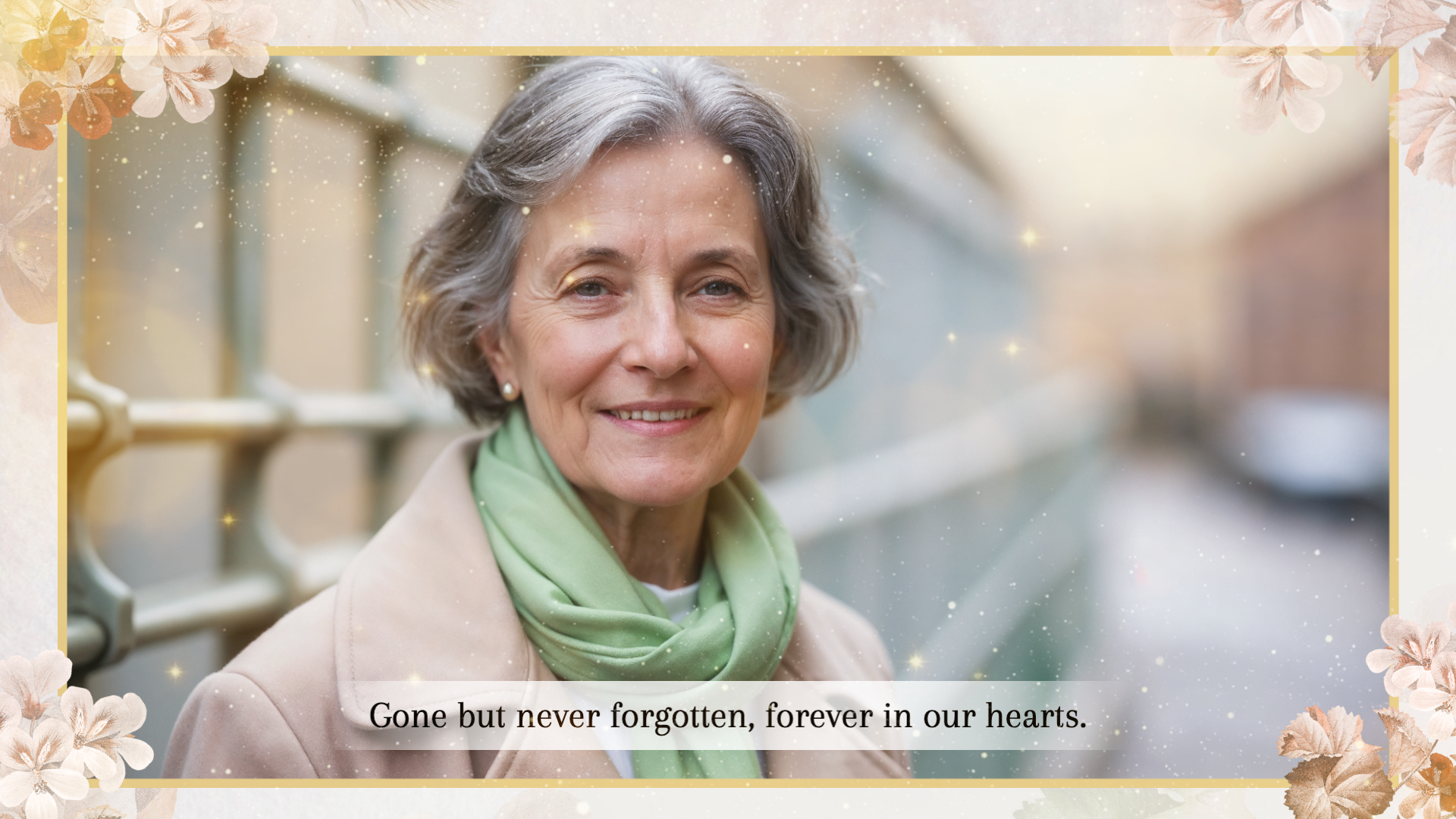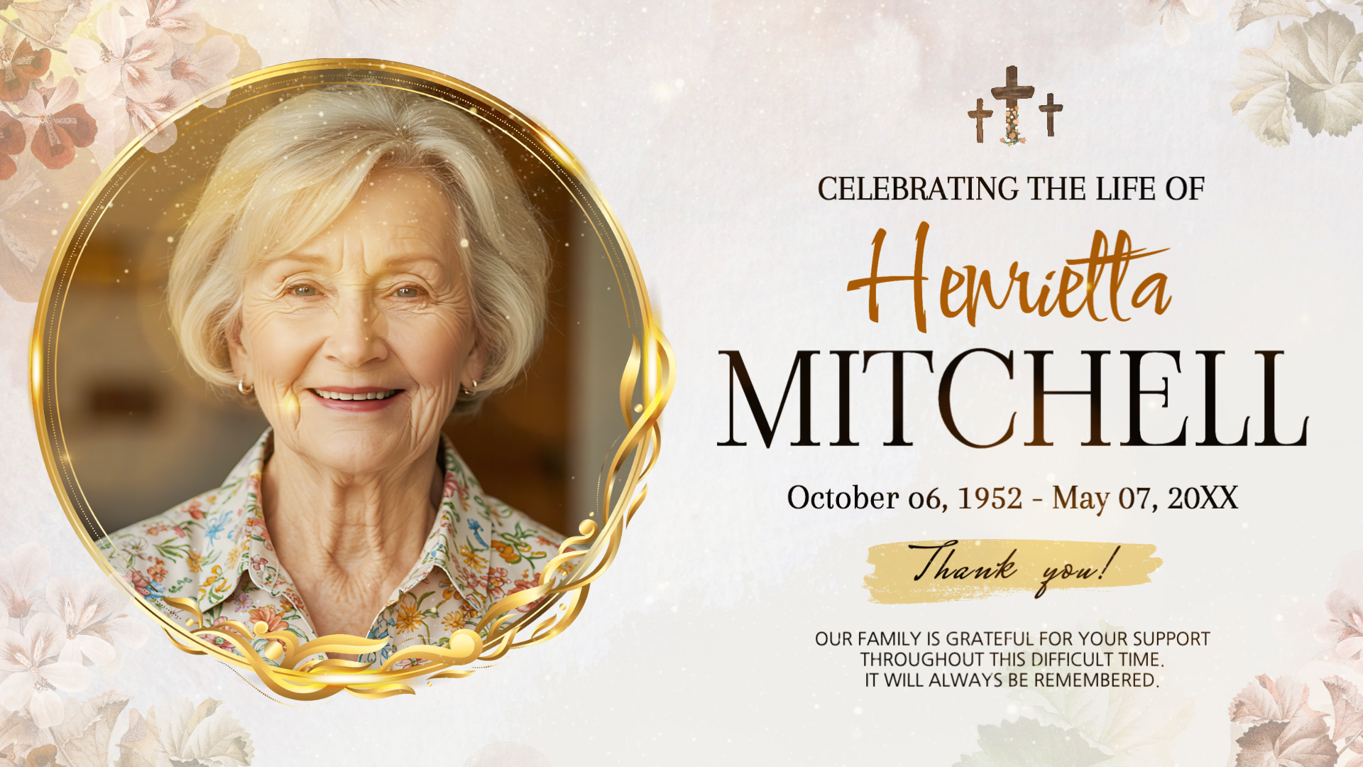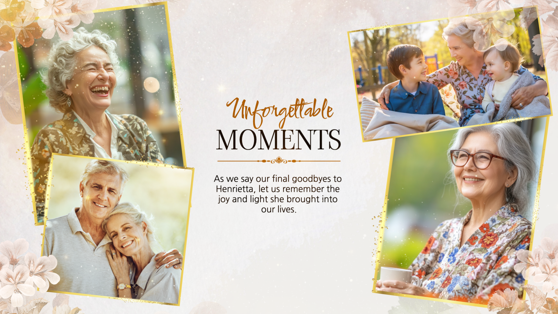 Designed by FlexClip's team, this funeral template exudes warmth and elegance. It organizes key elements—including funeral ceremonies, memories of the departed loved one, and tributes from family and friends—in a neat way, with thoughtful details that allow us to express our condolences and remembrance.
