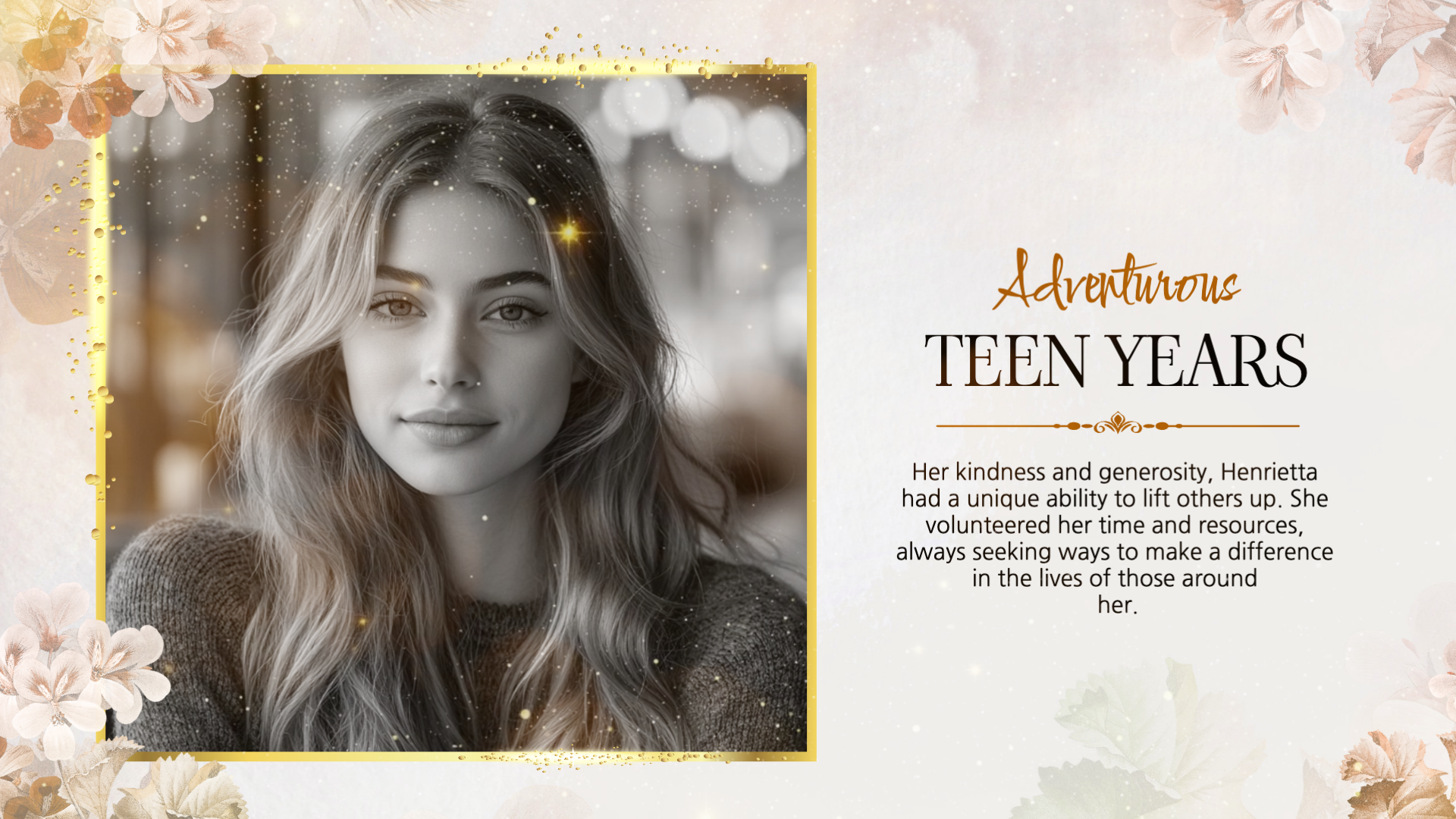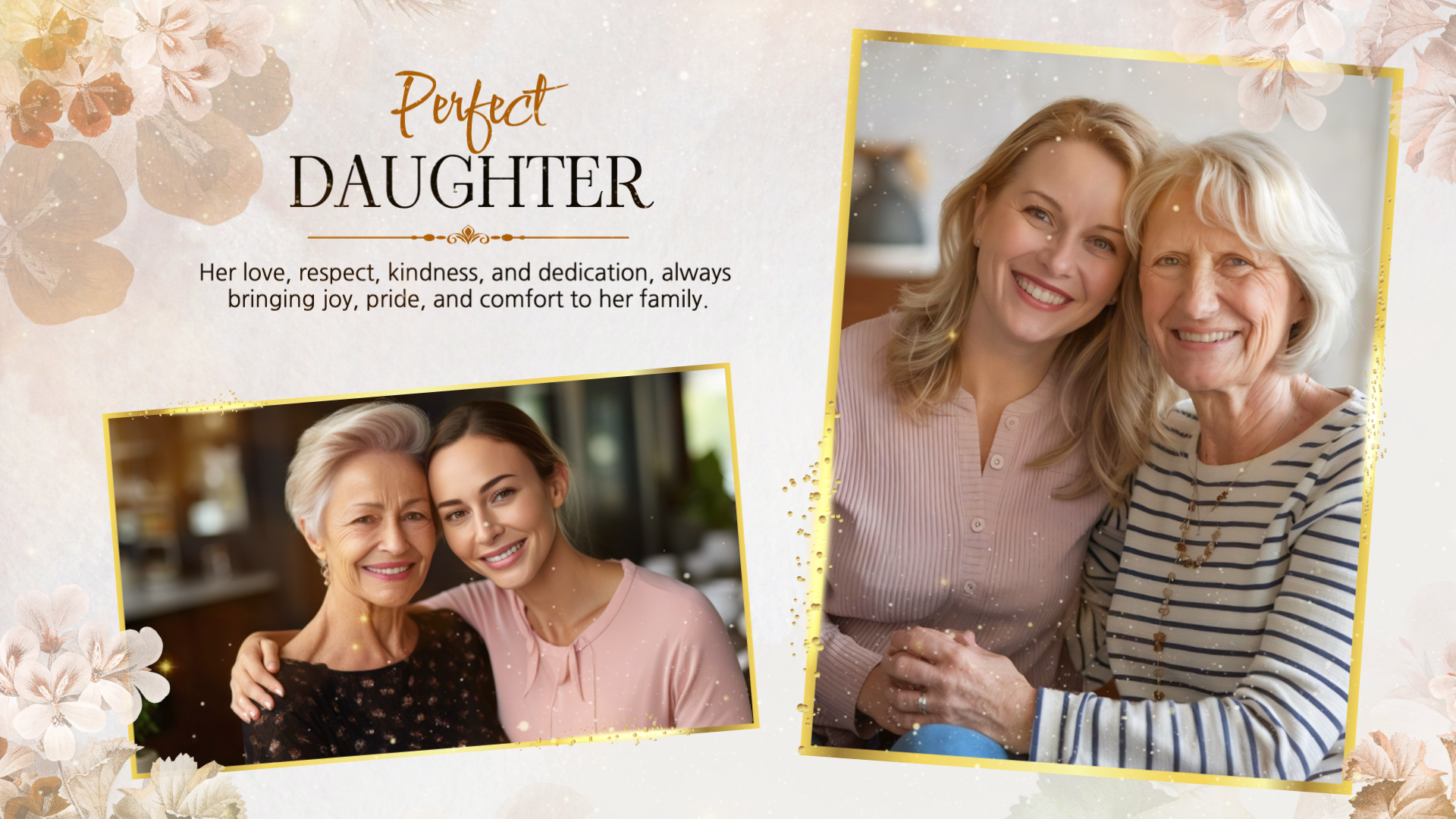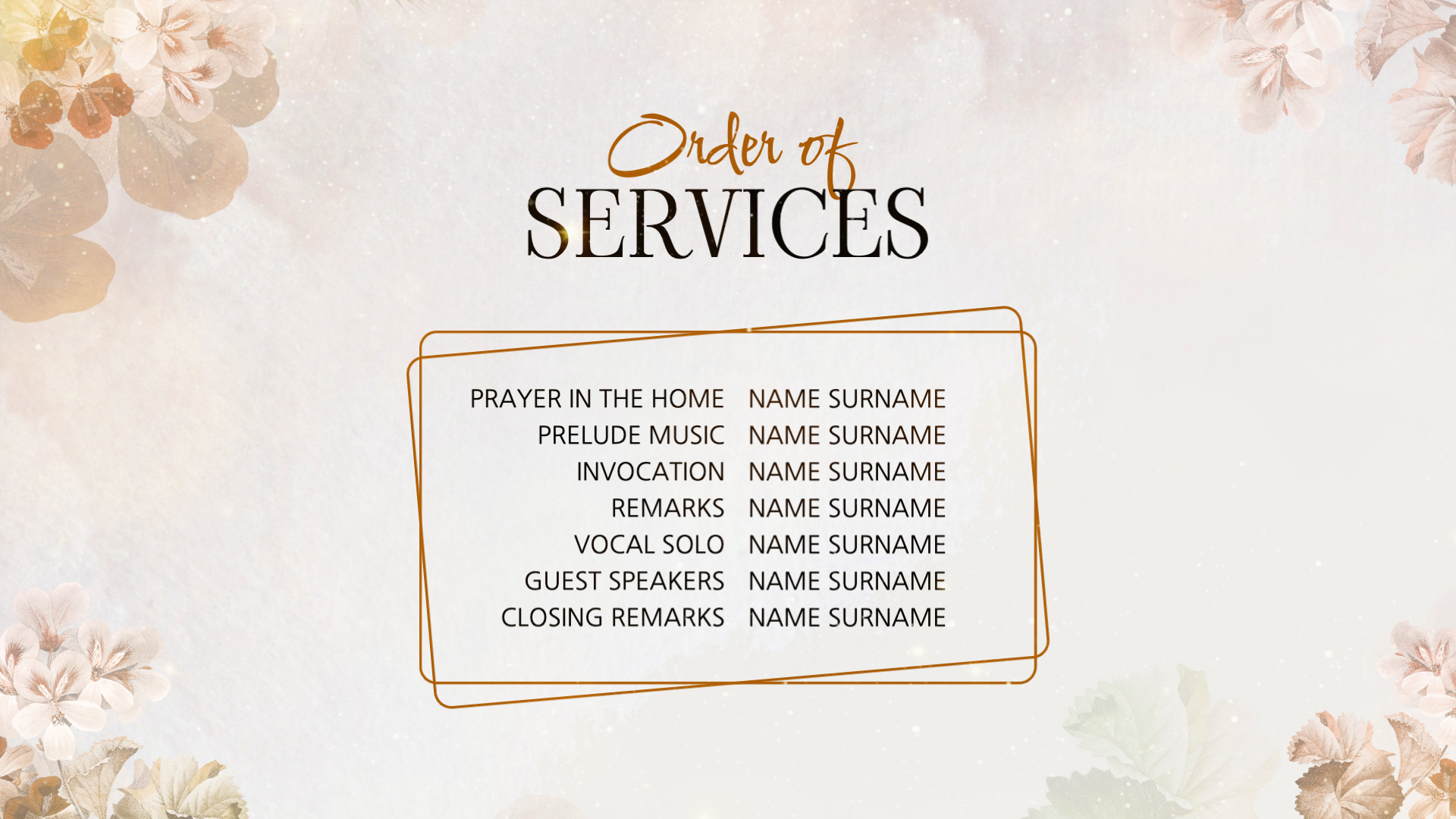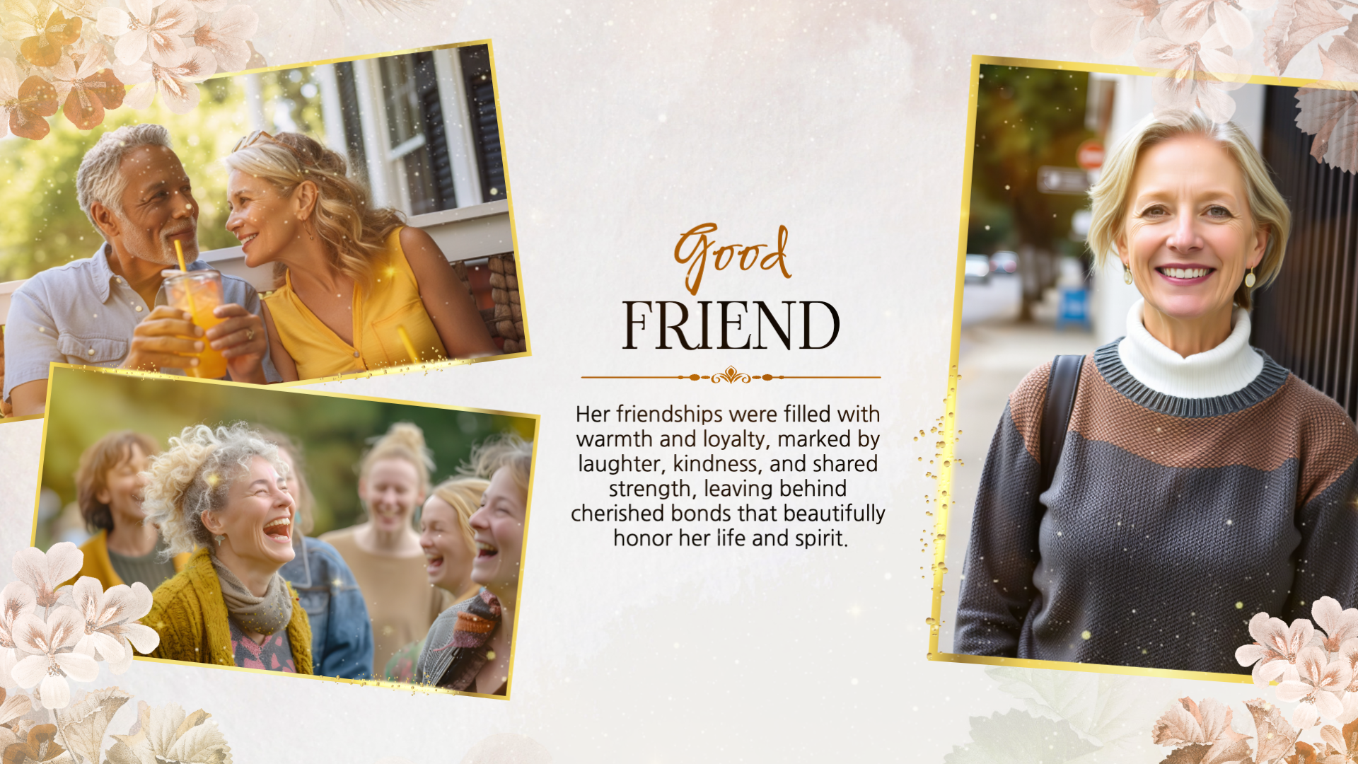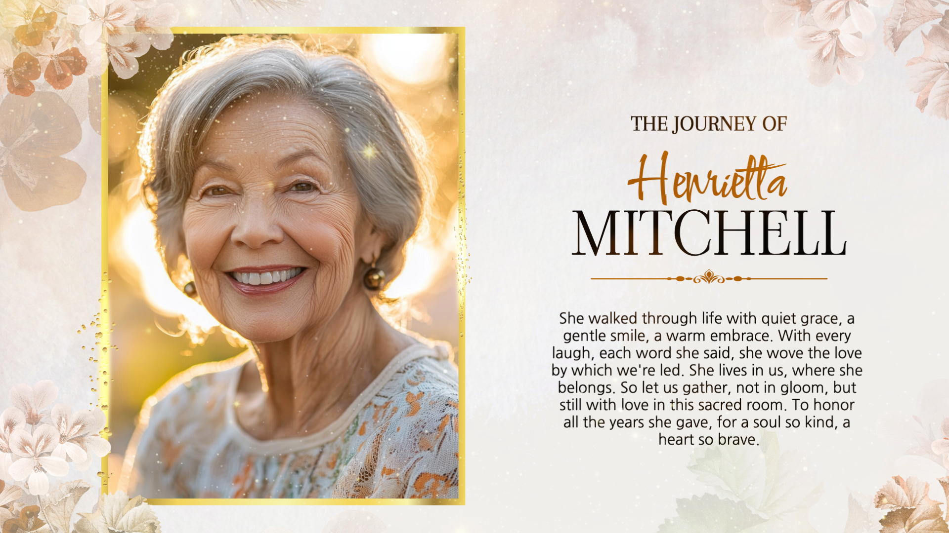 Designed by FlexClip's team, this funeral template exudes warmth and elegance. It organizes key elements—including funeral ceremonies, memories of the departed loved one, and tributes from family and friends—in a neat way, with thoughtful details that allow us to express our condolences and remembrance.