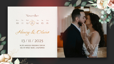Flower Romantic Love Wedding Invitation Card Save the Date Photo Collage Slideshow