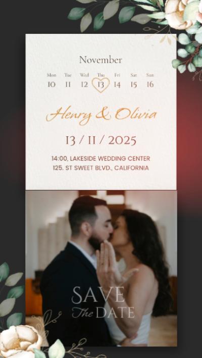 This wedding invitation template lets you combine it with wedding photos to send invites to friends and family, and it's free on FlexClip! Try it now!