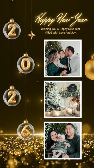 Gold Particle 2026 New Years Family Wish Card Photo Frame Collage Tiktok Story Intro