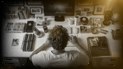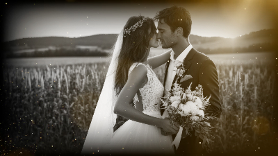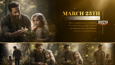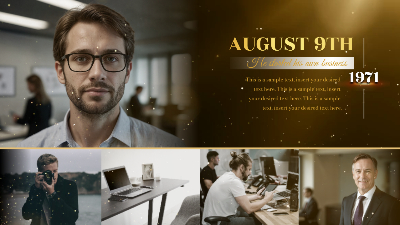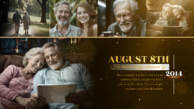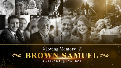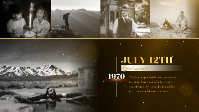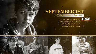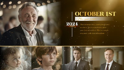 Gold Particle Memorial Tribute Funeral Celebration of Life Timeline History Photo Collage Slideshow