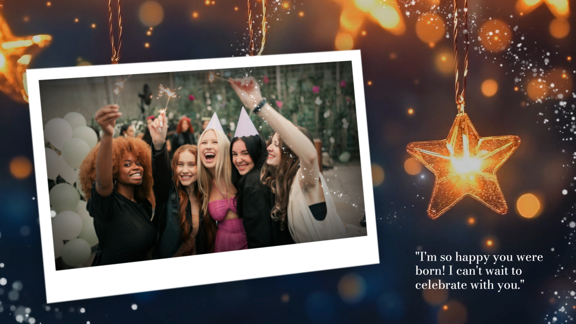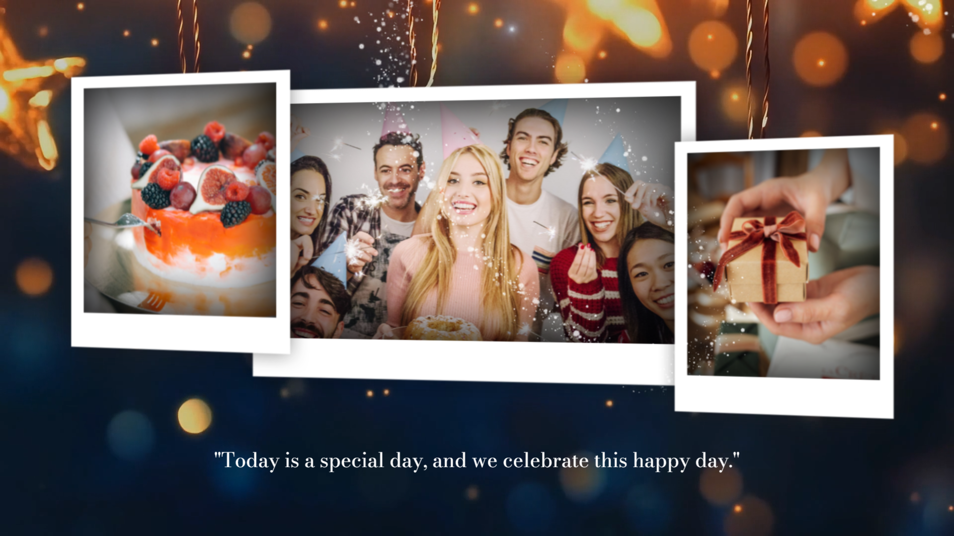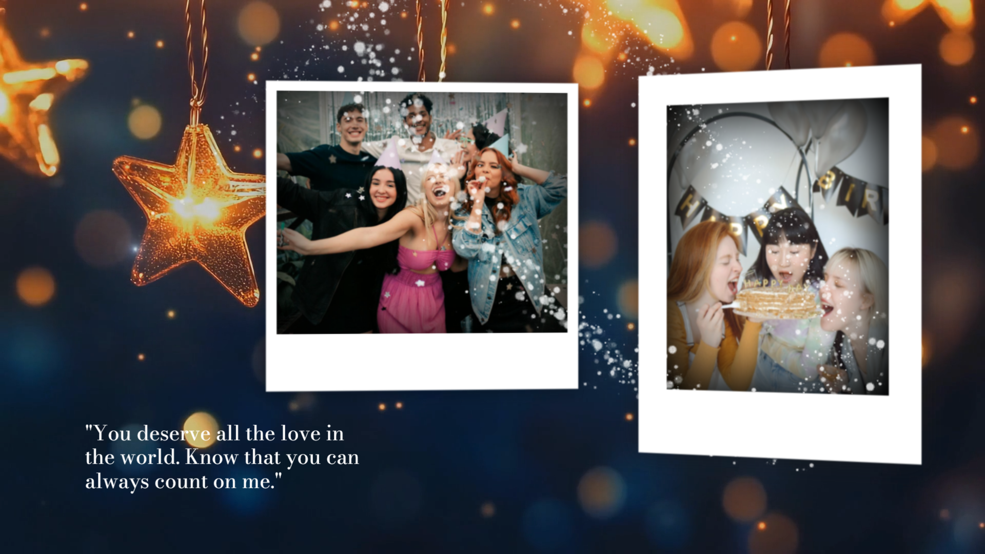 Golden Glowing Star Birthday Greetings Polaroid Photo Collage Slideshow Video