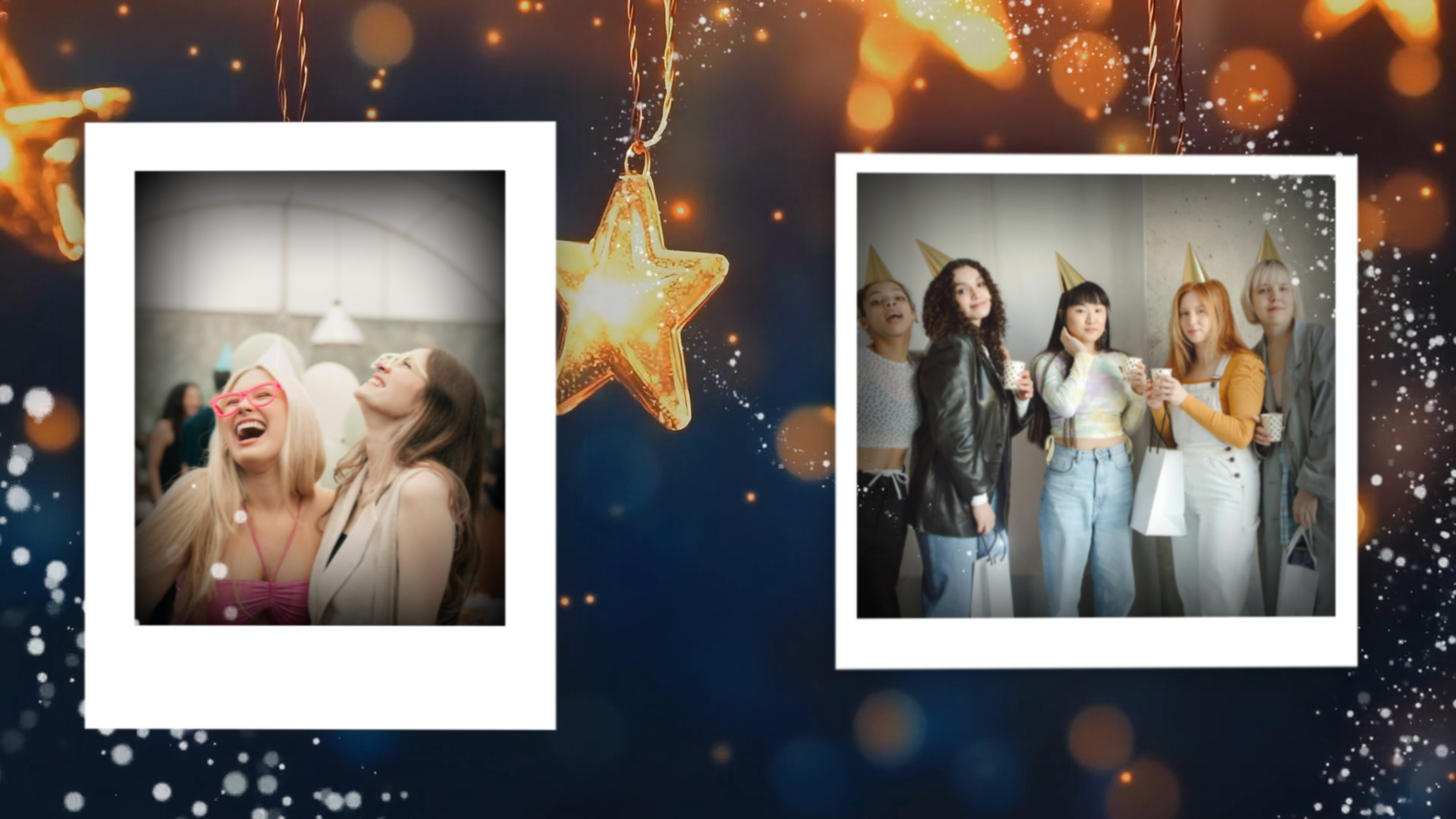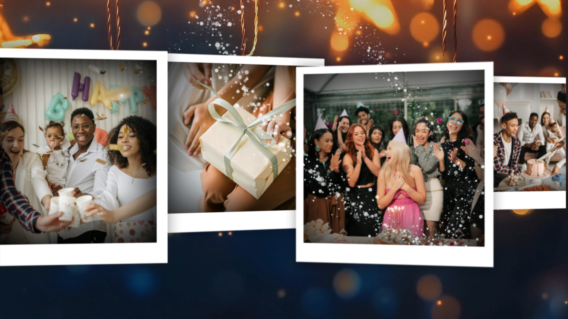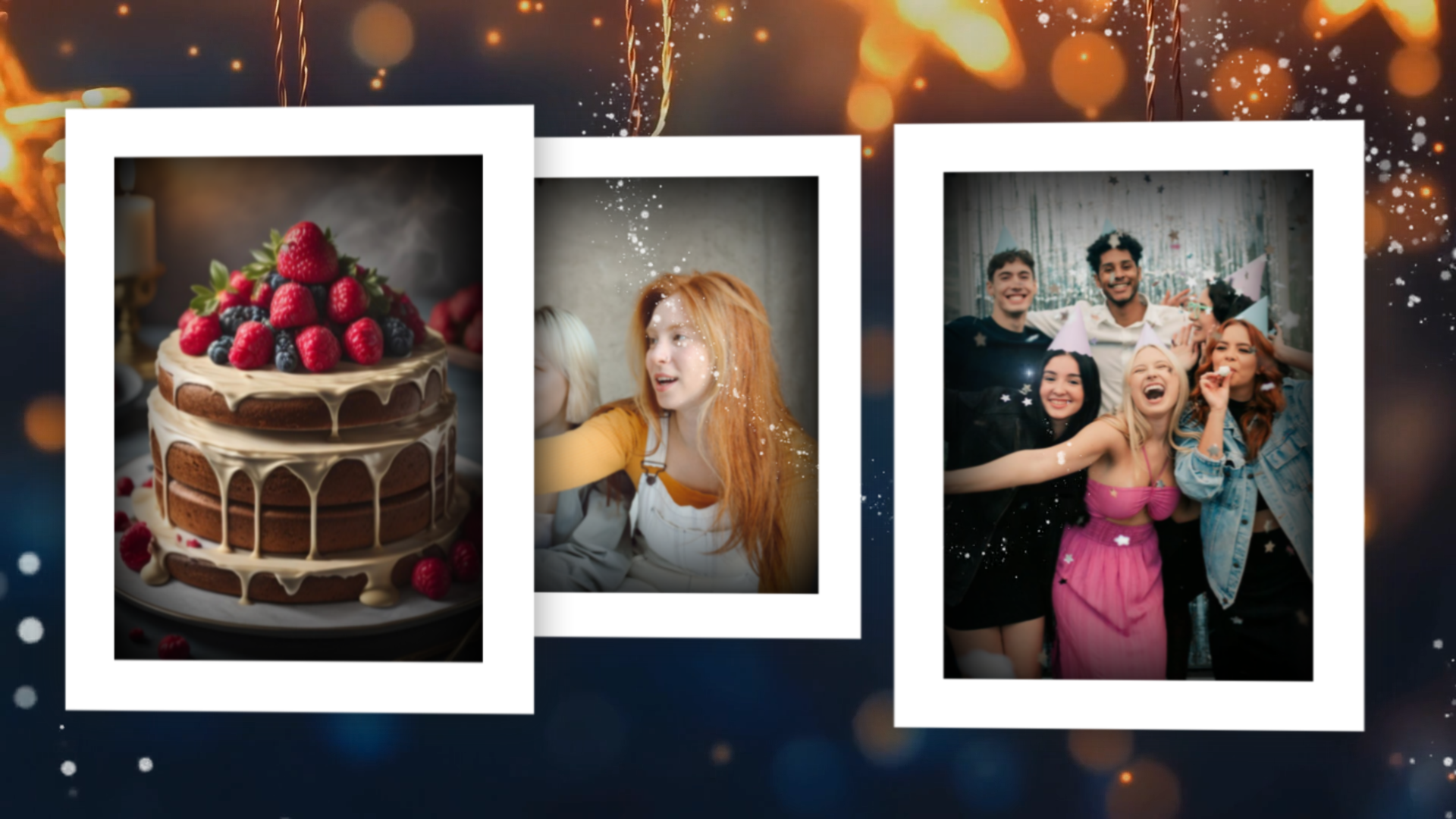 Golden Glowing Star Birthday Greetings Polaroid Photo Collage Slideshow Video