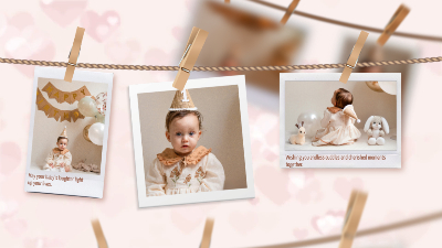 Here's a pink and lovely template for parents to record your baby's growth! Try this beautifully designed slideshow to record and witness every precious moment of your little one's journey! Click FlexClip now!