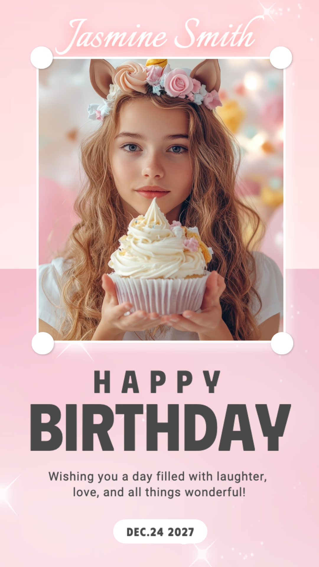 Ready to share your birthday's joy and warm blessings with the world on social apps such as TikTok? Snag this FlexClip template right now! Its lovely shining design will unfold your birthday photos one after another, making you feel like a pink princess! Girls, give it a try!