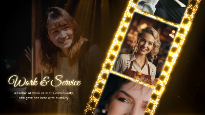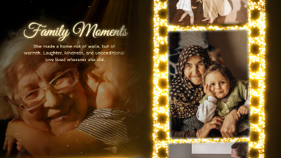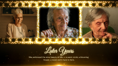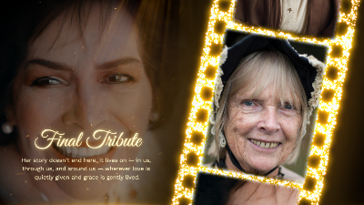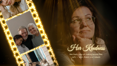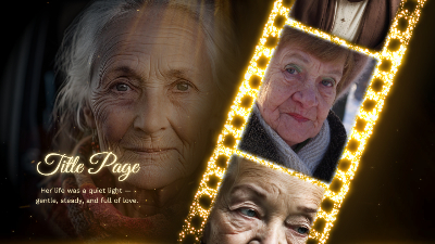 Life is like a movie, but just like any great film, it will always have an ending. Here's a funeral template from FlexClip with a film style and a beautiful golden background. Feel free to customize it and make it uniquely yours for honoring loved ones!