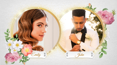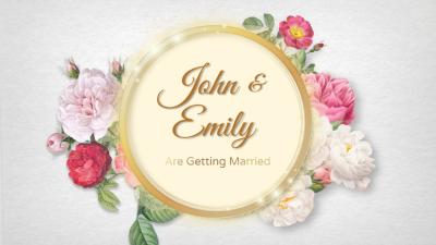 This is a template filled with love and happiness. Flowers surround the newlyweds, bringing the good news to everyone. If you are in need of an electronic wedding invitation template, this is the perfect choice. Come and customize one that belongs to you!