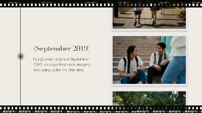 The four years of university life were neither too long nor too short. It was just the right duration for us to cherish those wonderful moments in our hearts. Come and use this slideshow template created by FlexClip, it's time to capture your wonderful college years!
