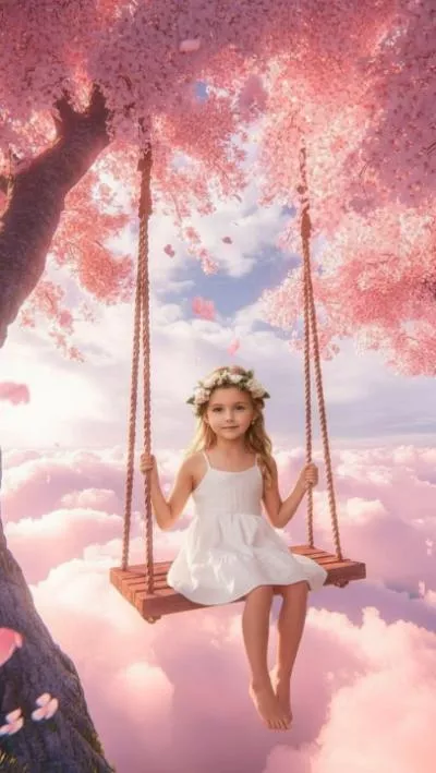 Blend Anime and Reality Baby Girl Swing in Anime Sky